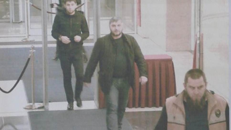 В центре — Руслан Геремеев. На переднем плане — Тамерлан Эскерханов. В гостинице «Украина» за день до убийства