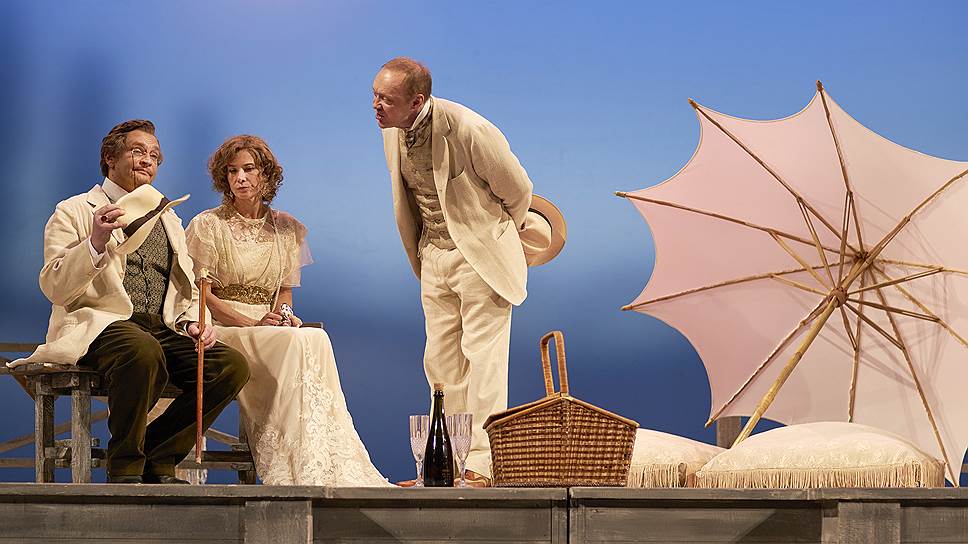 Впрочем, упрекнуть режиссера в бездействии будет черной неблагодарностью. Как и в предыдущих своих работах на сцене Театра имени Моссовета, он стремится освободить Чехова от всякой тяжеловесности, сообщить действию известную легкость: здесь нет массивных павильонов, актеры играют на подвижной платформе, на фоне задника-экрана с размытыми картинами пейзажей. По-моему, пространство спектакля все-таки остается безжизненным, вакуумным, но это суждение, конечно, бездоказательное. А вот то, что каждому персонажу "Вишневого сада" придуман свой рисунок и многим — неожиданные подробности, доказать несложно.