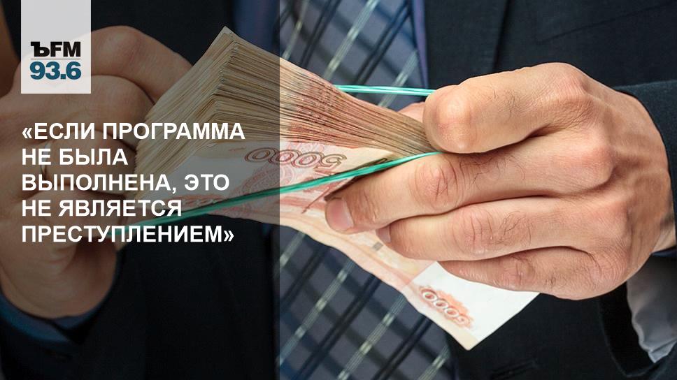 «Гарантии выдаются тем проектам, которые проходят процедуру одобрения. Если данный проект выглядит сомнительным и выдавать государственные гарантии под него слишком рискованно, они не предоставляются. Возможно, была нехватка таких проектов, соответственно, гарантии не выдавались. Выдача гарантий — это не выдача денег, это выдача поручительства субъекта бизнеса, который кредитуется. Сейчас рано говорить о перспективе дела, потому что если денежные средства не были расходованы и программа не была выполнена, это не является преступлением. Преступлением может являться нецелевое расходование», — объяснил Леонтьев.