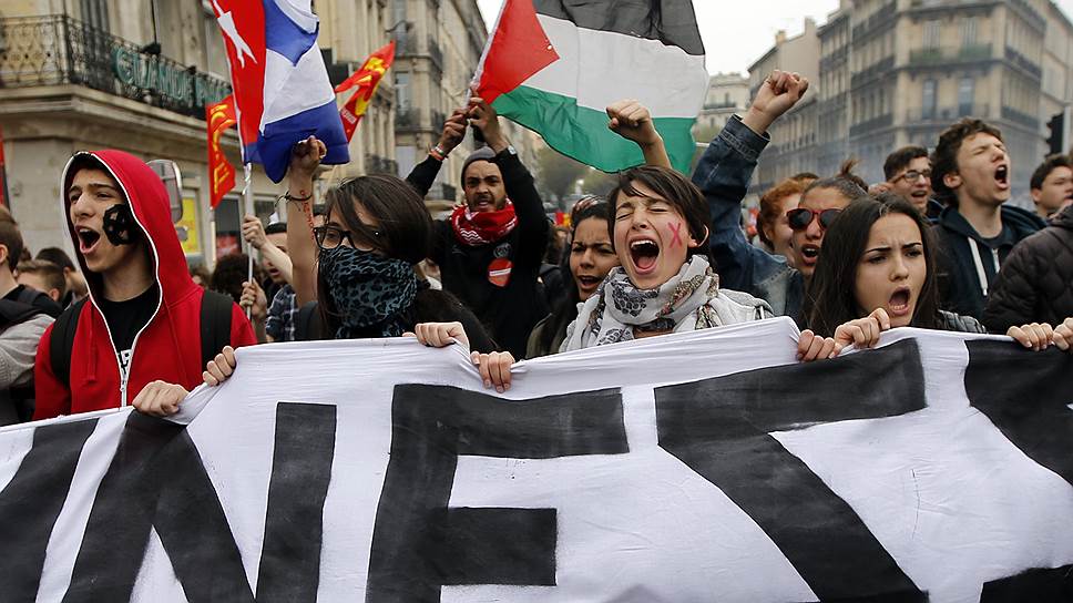 В четверг сотни тысяч французов вышли на улицы в рамках акций протеста против предложенной правительством страны реформы трудового законодательства. Среди участников шествий были как работающие французы, так и студенты. По оценке организаторов, в акциях протеста, прошедших в разных городах Франции, приняли участие 1,2 млн человек, по оценке Министерства внутренних дел — около 400 тыс. В Нанте и Ренне полиция применила против протестующих, которые закидывали ее камнями, слезоточивый газ. В Париже, Тулузе и других городах было задержано более 100 человек. Шествия привели к 400-километровым пробкам на дорогах вокруг Парижа. По подсчетам полиции, в акциях протеста в Париже приняли участие 28 тыс. человек. В связи с забастовкой была отменена пятая часть рейсов в аэропорту Шарль де Голль, отмены также затронули государственную железнодорожную компанию SNCF.