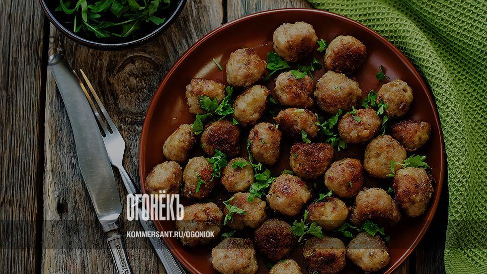 Сам Оттоленги пишет, что в тефтельке встретились необходимость и способность выйти из любого положения. Как, например, в этом рецепте. Лук и петрушку нужно мелко нарезать, яйцо легко взбить вилкой, а потом смешать с ними фарш, добавив сухие хлебные крошки, душистый и обычный черный перец и, конечно, соль. Из этой смеси скатать тефтельки — их получится около 20. В сотейнике с толстым дном разогреваем оливковое масло, обжариваем шарики со всех сторон минут 5 и вынимаем. Корень сельдерея нарезаем палочками, чеснок просто давим плоской стороной ножа или некрупно нарезаем и вместе с остальными специями кладем все в сотейник, где только что жарились тефтельки. Поджариваем их 2 минуты на большом огне, а потом возвращаем тефтели в сотейник, добавляем бульон, лимонный сок, солим, перчим и доводим до кипения. Затем остается уменьшить огонь и оставить все еще на полчаса до полной готовности под крышкой. Под конец — еще 10 минут под крышкой, чтобы соус немного выкипел и загустел, и тефтели можно подавать вместе с оставшейся петрушкой и йогуртом.