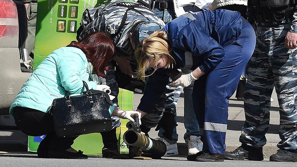 В Москве на Тверской улице в районе дома №6 сотрудники полиции и саперы досматривают автомобиль Volkswagen, в багажнике которого обнаружено оружие. Фотокорреспондент «Ъ» передает с места событий, что из машины были извлечены предметы, похожие на ручные гранатометы.