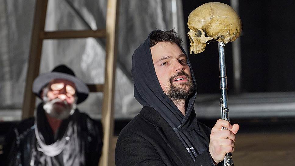 Сцену осваивают постепенно — спрятавшись в строительных лесах, Гертруда и Клавдий будут подслушивать Гамлета. Потом на трех лестницах, высунутых из зияющих провалов сцены, появятся три персонажа. Они здесь Горацио, Бернардо и Марцелл и в то же время бродячие актеры и, можно сказать, вечные люди от театра (неслучайно Додин поручил этих героев корифеям труппы — Игорю Иванову, Сергею Курышеву и Сергею Козыреву). Но принцу актеры вдруг покажут сцену из "Короля Лира", а перед королем и королевой в качестве "мышеловки" разыграют вовсе даже не "Убийство Гонзаго", а встречу Гамлета с призраком — чистый вымысел, потому что до этого никакой встречи принца с тенью своего отца не случится. Нет у Додина никакого призрака, да и покойный король был, судя по всему, не невинной жертвой, а тираном и мерзавцем. Хитрый царедворец Полоний в Малом драматическом — не отец, а брат Офелии, а ее брат Лаэрт, положенный по тексту Шекспира, вообще отсутствует...