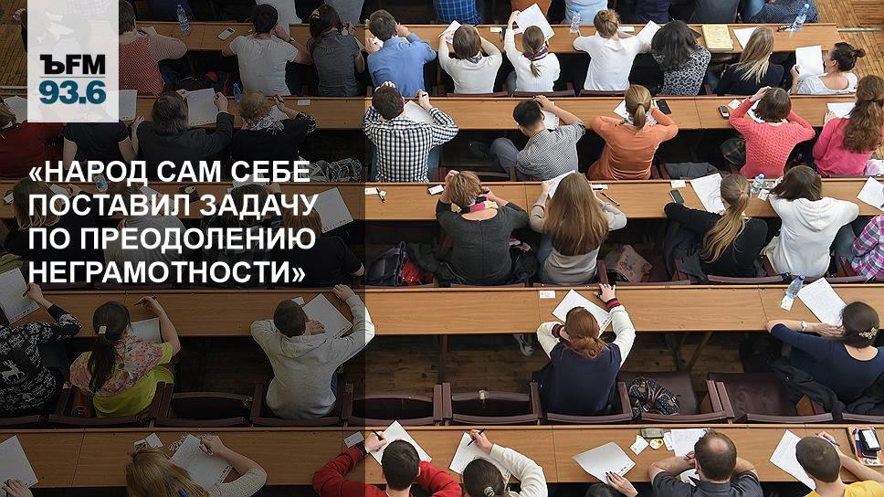 «Тотальный диктант» напишут 16 апреля на земле, воде и в воздухе. В акции, которая начнется в 3 часа дня по Москве, примут участие жители 480-ти российских городов и 250-ти зарубежных. Особенной популярностью, помимо России, она пользуется в США, Испании и Китае. Диктант также будут писать моряки парусника «Крузенштерн», пассажиры авиарейса Новосибирск-Москва, члены команды ледокола и полярники в Антарктиде. В акции традиционно примут участие знаменитости. Они будут диктовать текст на более чем 2 тыс. площадок. «Коммерсантъ FM» спросил у них, почему акция так важна.