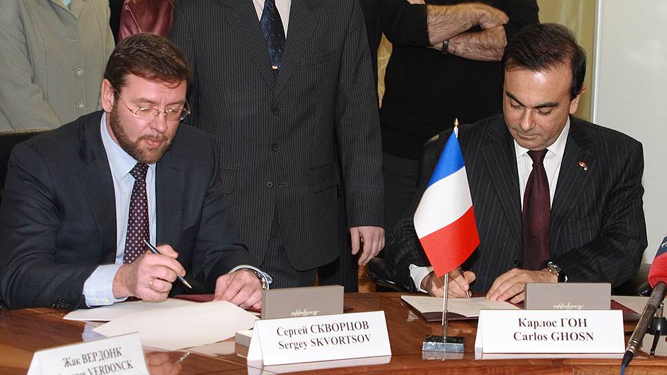 Заместитель главы «Ростеха» Сергей Скворцов (слева) и бывший глава альянса Renault-Nissan Карлос Гон (справа)