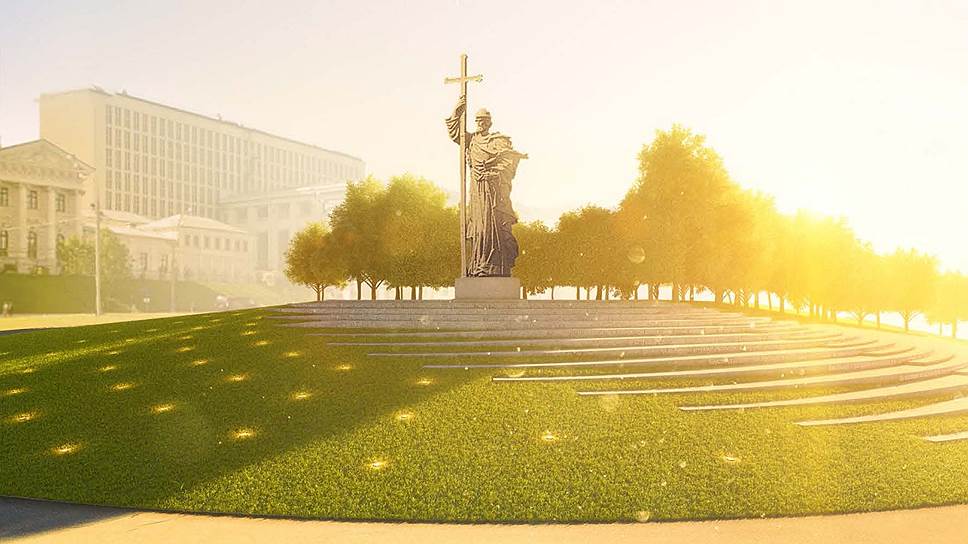 «Все эти волны не случайны,— рассказал господин Кузнецов о проекте AI Architects.— Функционально эта каменная воронка собирает людей. И эта воронка направляет людей к Дому Пашкова. А дизайнерская задача — отразить исторический процесс крещения водой. Это знаковый монумент, мы не должны стесняться его и прятать». Памятник князю Владимиру планируется установить 4 ноября.