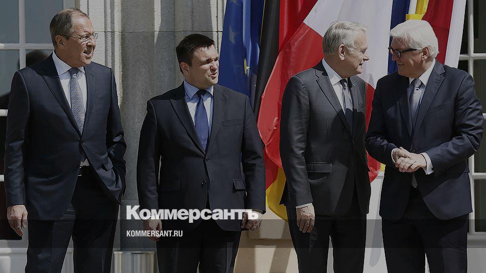 Переговоры министров иностранных дел четырех стран, участвующих в украинском урегулировании, прошли в среду на вилле Борзиг в окрестностях Берлина. «Это был долгий, очень конкретный и непростой разговор,— рассказал по итогам переговоров глава МИД РФ Сергей Лавров.— Но главным было то, что все мы хотим полностью выполнить договоренности, которые были зафиксированы в Минске лидерами четырех стран в феврале прошлого года».