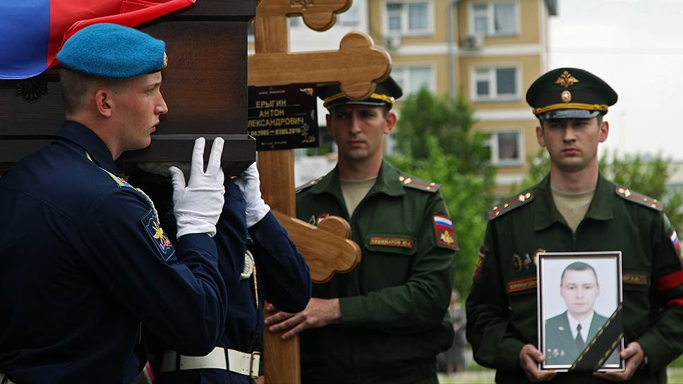 В Воронеже 12 мая похоронили в закрытом гробу связиста сержанта Антона Ерыгина, убитого снайпером в Сирии. Церемония началась в 10.00 в культурно-досуговом центре «Северный» (бывший Дом офицеров Коминтерновского района Воронежа). Почти все люди, стоявшие в ожидании начала церемонии перед входом в центр, были военными. В основном это были сослуживцы Антона Ерыгина из дислоцированной в Воронеже 9-й бригады управления 20-й общевойсковой армии, в том числе и командующий армией генерал-майор Сергей Кузовлев. Местные власти решили массово на похороны не приезжать — облправительство представлял руководитель управления по взаимодействию с административными и военными органами Борис Зинченко. По сообщениям пресс-служб, соболезнования родственникам погибшего выразили губернатор Алексей Гордеев и мэр Александр Гусев.