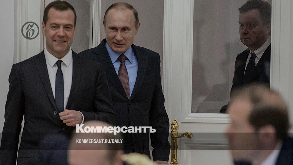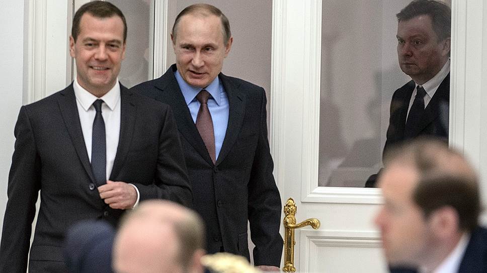 Председатель правительства России Дмитрий Медведев (слева) и президент России Владимир Путин