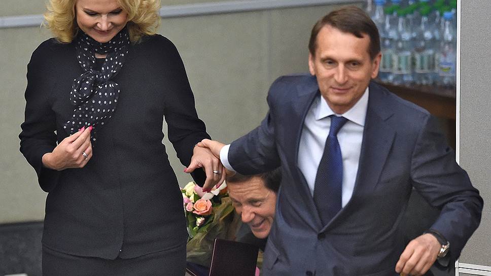 Председатель Госдумы Сергей Нарышкин (справа) оценил работу главы Счетной палаты Татьяны Голиковой в 2015 году думской наградой