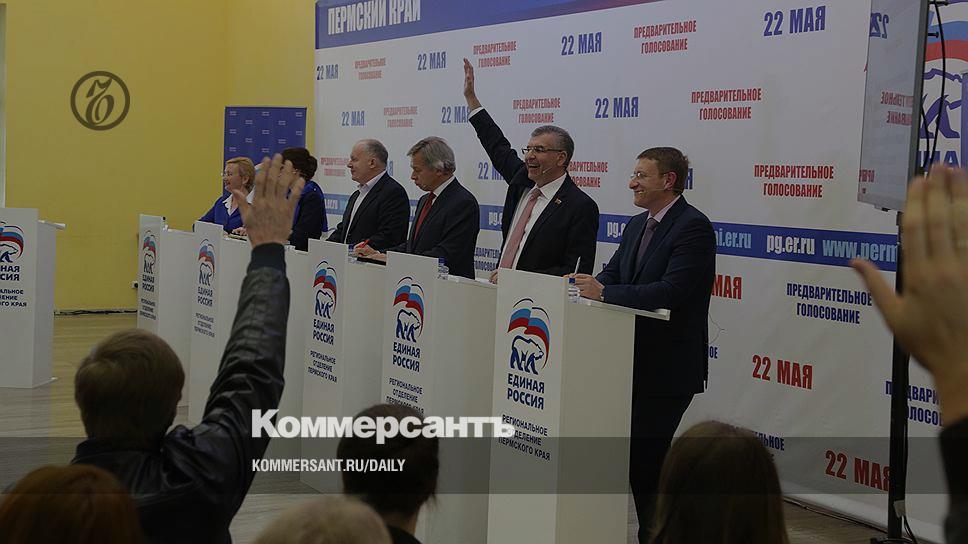 Губернатор Пермского края Виктор Басаргин, тоже подававший заявление на участие в праймериз, в них не участвовал. «Он и не должен был участвовать», — отметил источник в его окружении, пояснив, что первая тройка партсписка формируется не на праймериз, а решением высшего руководства партии. Ранее „Ъ“ сообщал, что в эту тройку, помимо главы региона, могут войти декан экономического факультета ПГНИУ Татьяна Миролюбова и Герой России Сергей Яшкин.