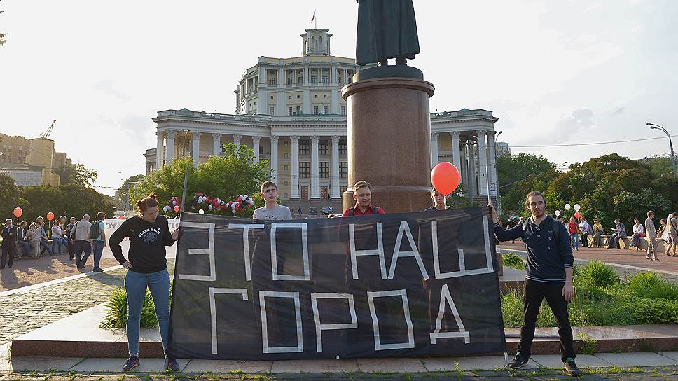 Конфликт между градозащитниками и московскими властями разгорелся с новой силой после ликвидации так называемой сносной комиссии при правительстве Москвы (упразднена в конце декабря 2015 года решением суда, которое вступило в силу в январе 2016 года.— "Ъ"). По мнению организаторов митинга, упразднение комиссии привело к тому, что на данный момент в Москве нет механизма защиты исторических зданий. На этом основании защитники исторической Москвы требуют придания Москве статуса исторического поселения и намерены создать городской совет по наследию. Поддержать идею придания Москве исторического статуса пришли около 500 человек, среди которых были как отдельные активисты, так и представители инициативных групп из разных районов города, борющихся за сохранность экспериментальных полей Тимирязевской академии, парка усадьбы Кусково и парка "Дубки". Защитников зеленых насаждений поддерживали противники сноса конструктивистских АТС, застройки Стадиона юных пионеров, строительства на Новой Басманной. "Я коренная москвичка и вижу, как на моих глазах разрушают мой родной город, и согласиться с этим не могу",— сказала корреспонденту "Ъ" член Московской городской коалиции (объединение нескольких десятков инициативных групп.— "Ъ") Любовь Зайцева.