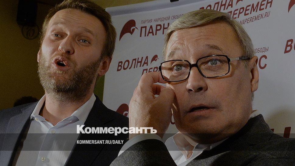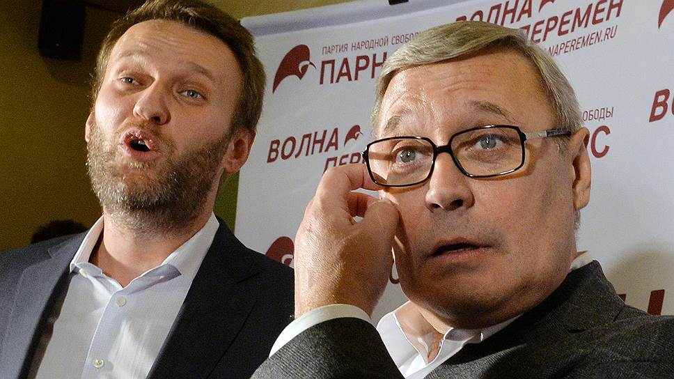 Председатель партии РПР-Парнас Михаил Касьянов (справа) и оппозиционер Алексей Навальный