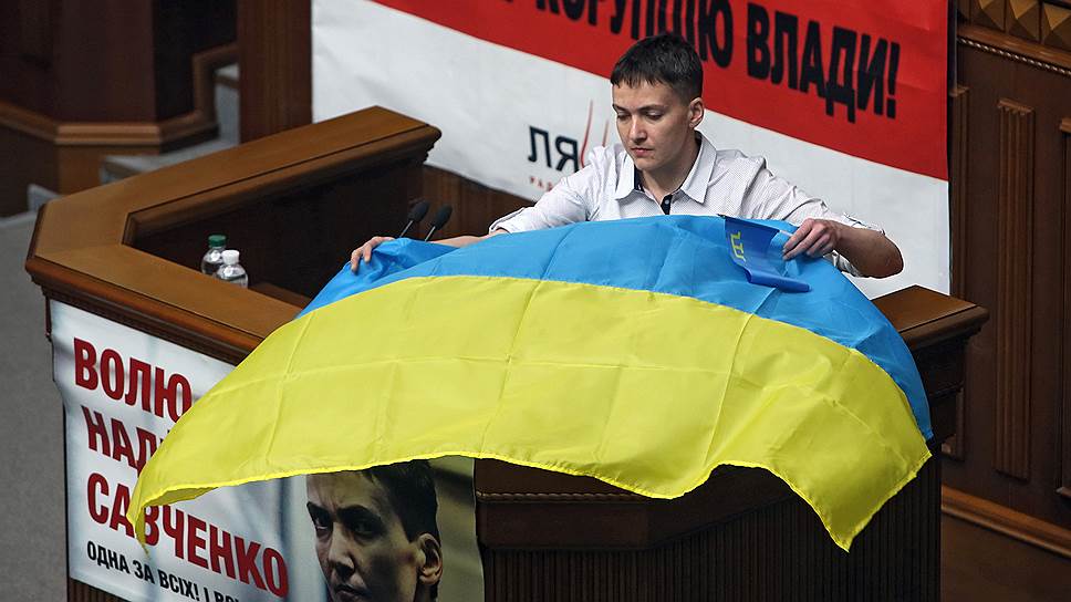 Сегодня Надежда Савченко выступила на заседании Верховной рады. В сессионный зал госпожа Савченко вошла с флагом Украины на плече. В своем обращении к депутатам она призвала коллег не забывать о защитниках страны, погибших за минувшие годы, и о тех, кто еще находится в плену. «Я вернулась и включаюсь в работу. Я вернулась и я не дам вам забыть о тех парнях, которые начинали ложиться за Украину на Майдане и продолжают сейчас умирать на Донбассе»,— приводит ее слова «РИА Новости».