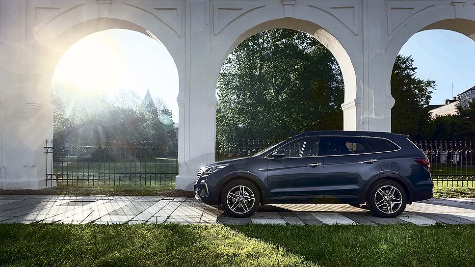 На улицах Новгорода Grand Santa Fe сошел бы за своего. После обновления автомобиль обзавелся новыми колесными дисками, бамперами и решеткой радиатора. Но самая узнаваемая деталь экстерьера обновки - измененная светодиодная оптика. Выражаясь исконным языком, облик Santa Fe в целом смотрится "лепо" и "союзно". К тому же в палитру окраски кузова добавили пару дополнительных цветов. Трехцветным теперь может быть и салон. Вот, пожалуй, и все.