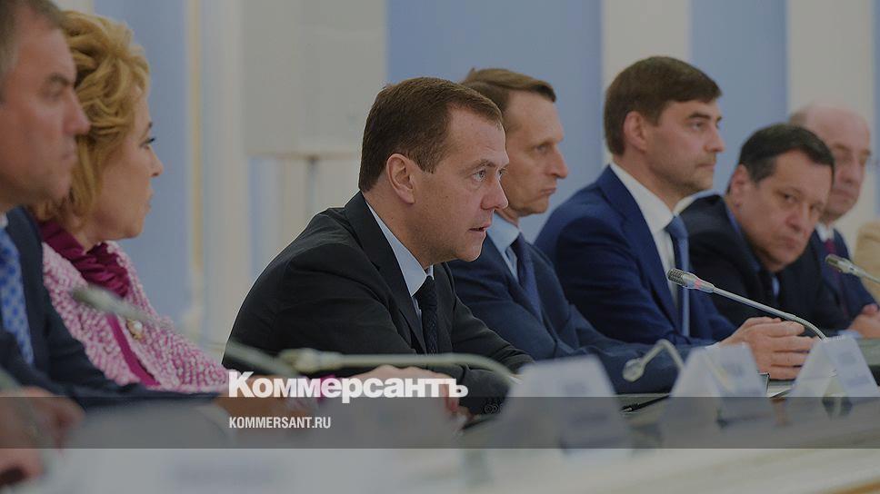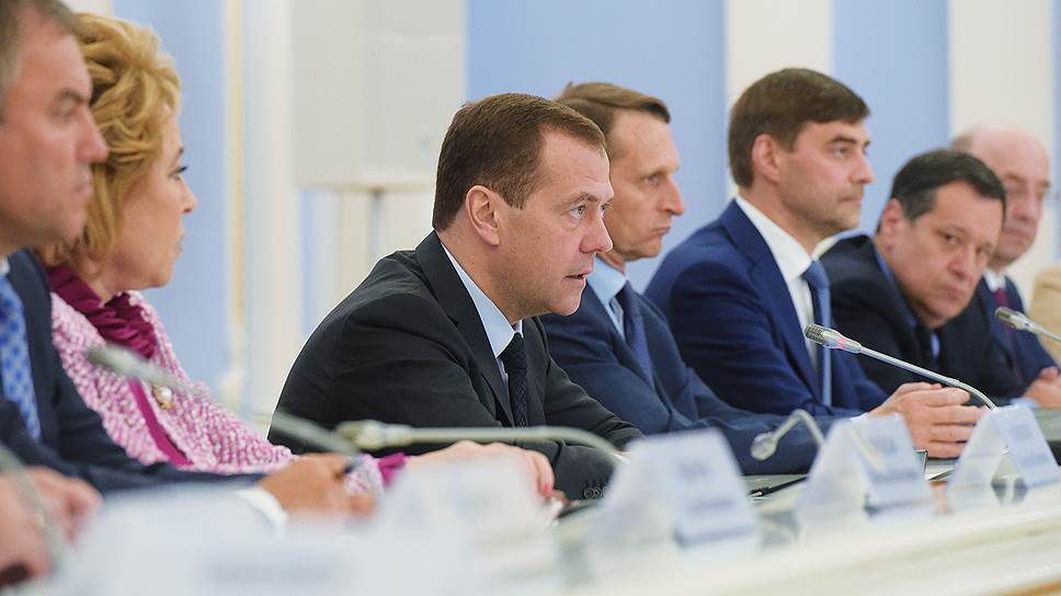 Председатель правительства РФ Дмитрий Медведев (в центре)