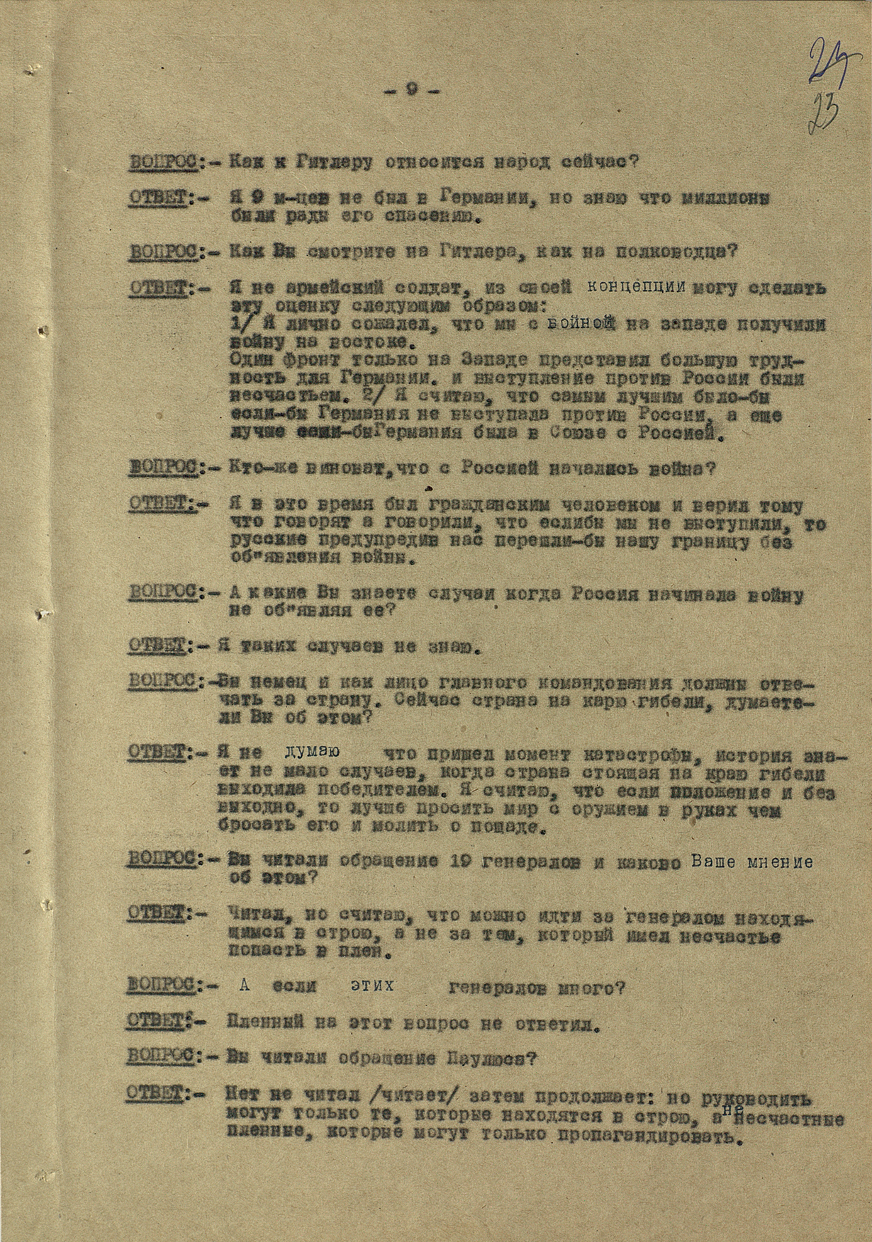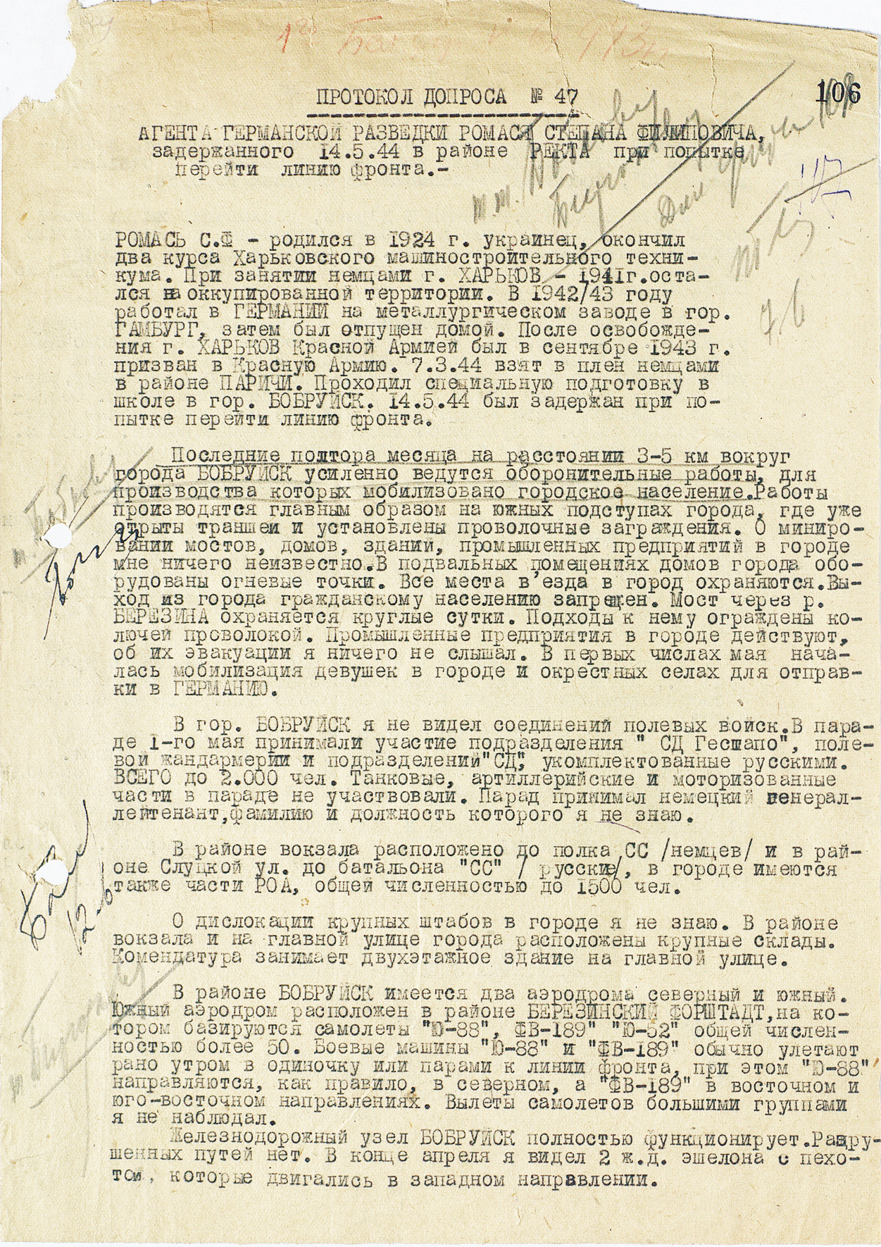 Протокол допроса агента германской разведки