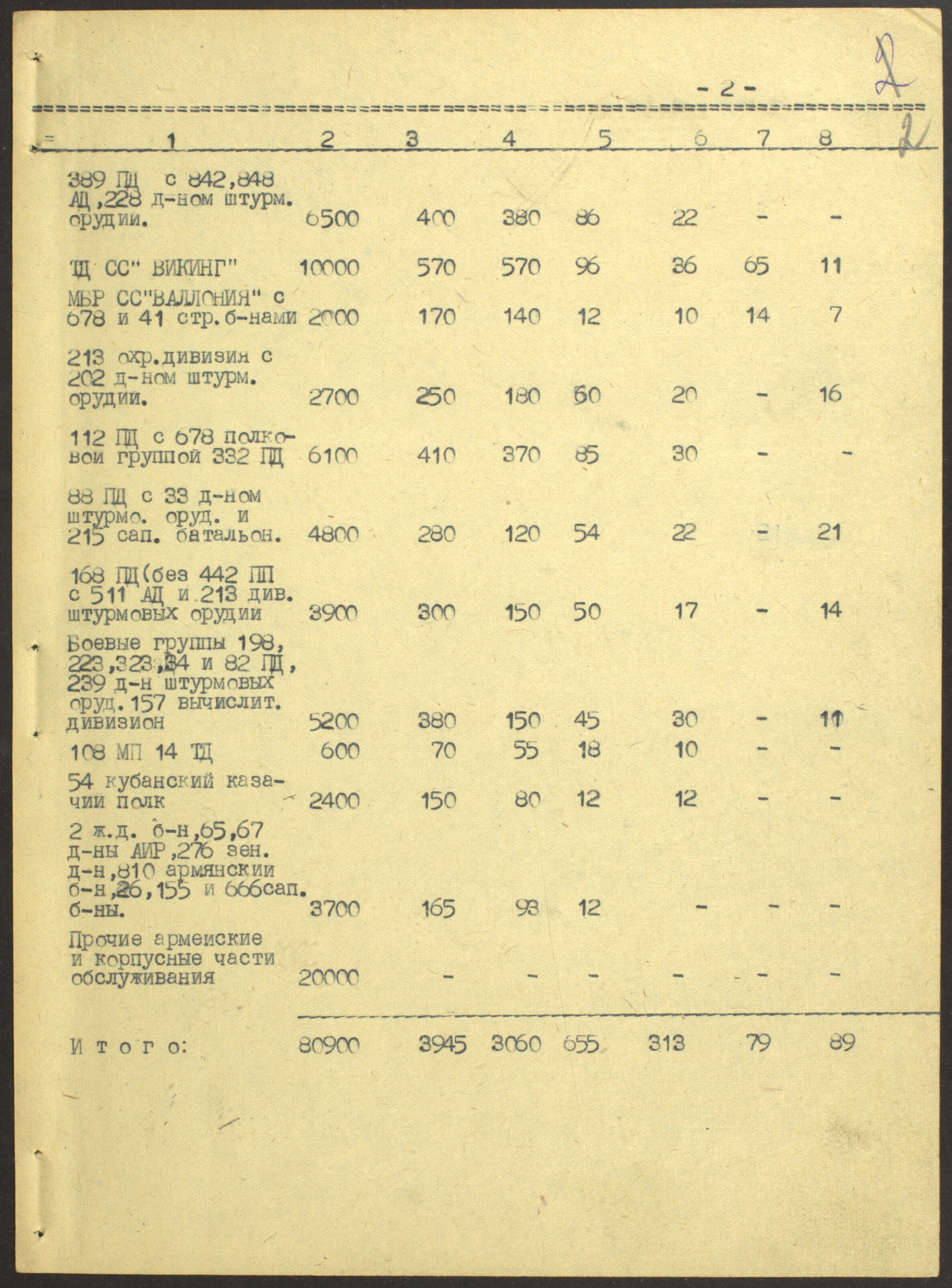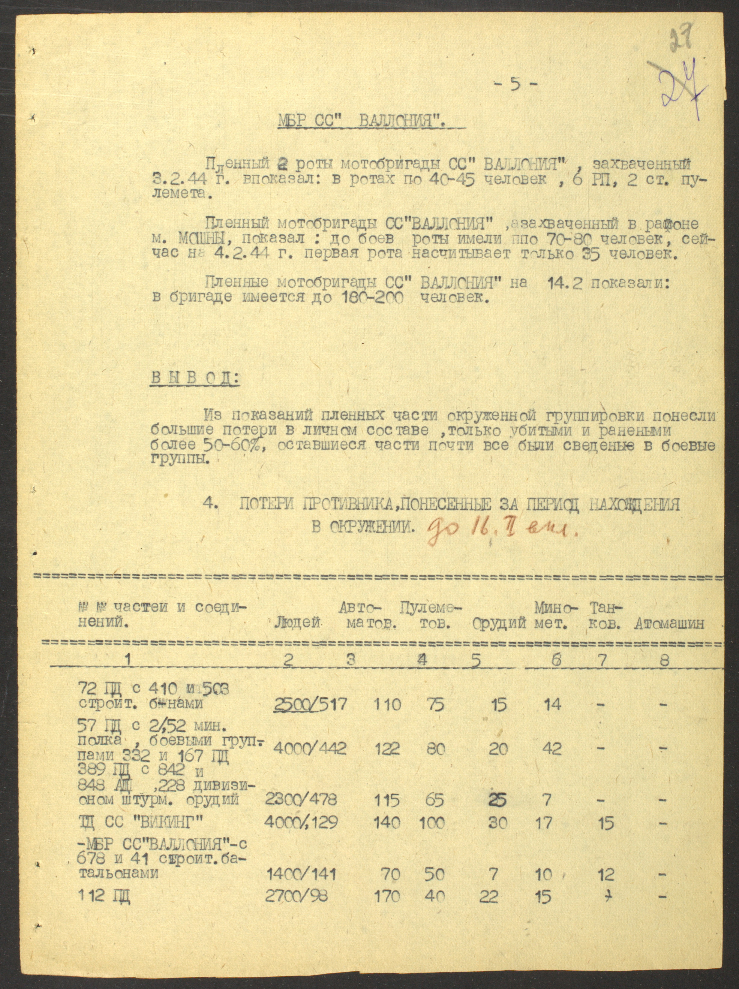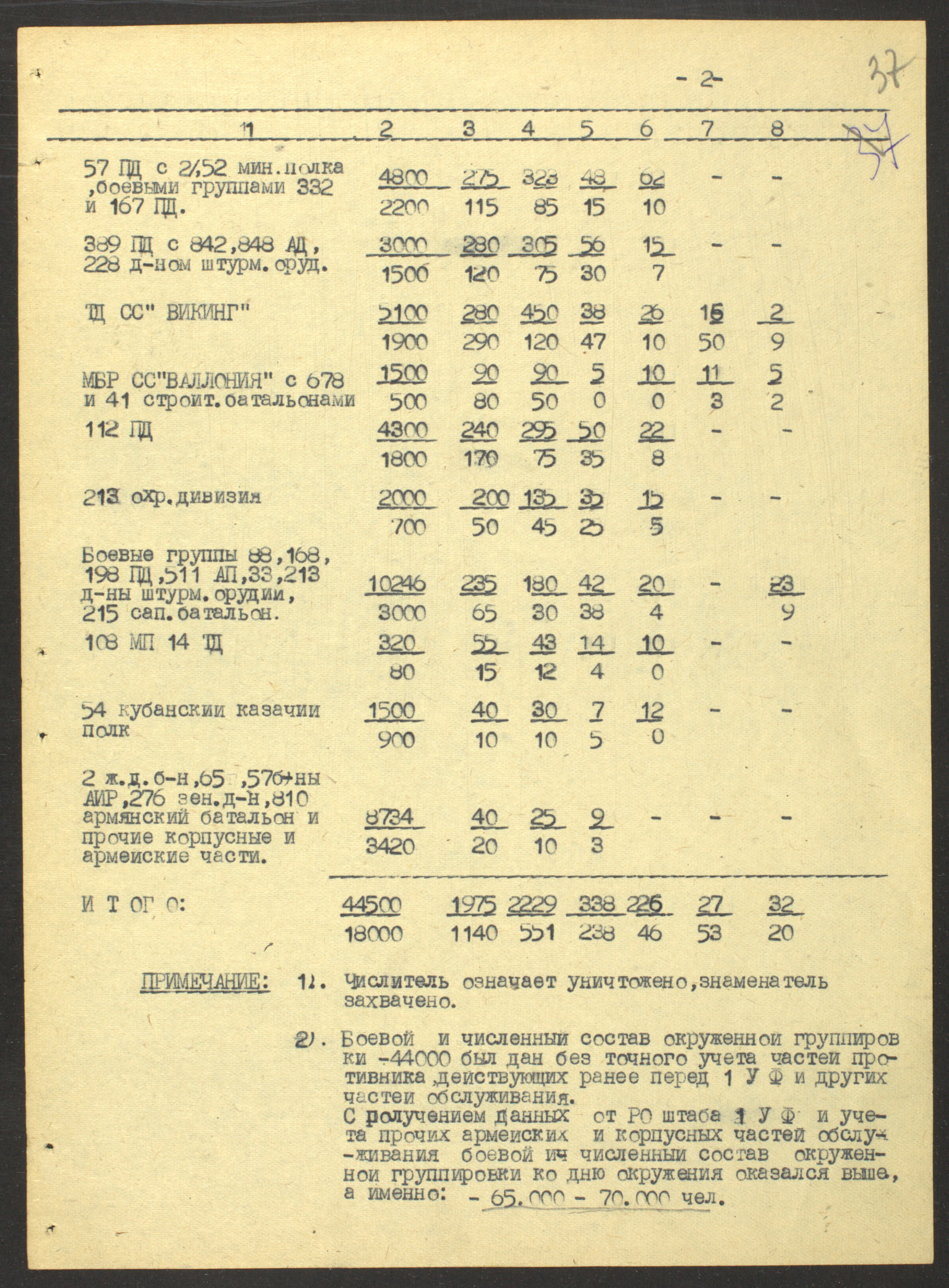 Сводка разведуправления о потерях дивизий 18-й армии (AOK 18) с 15 января по 10 февраля 1944 г.