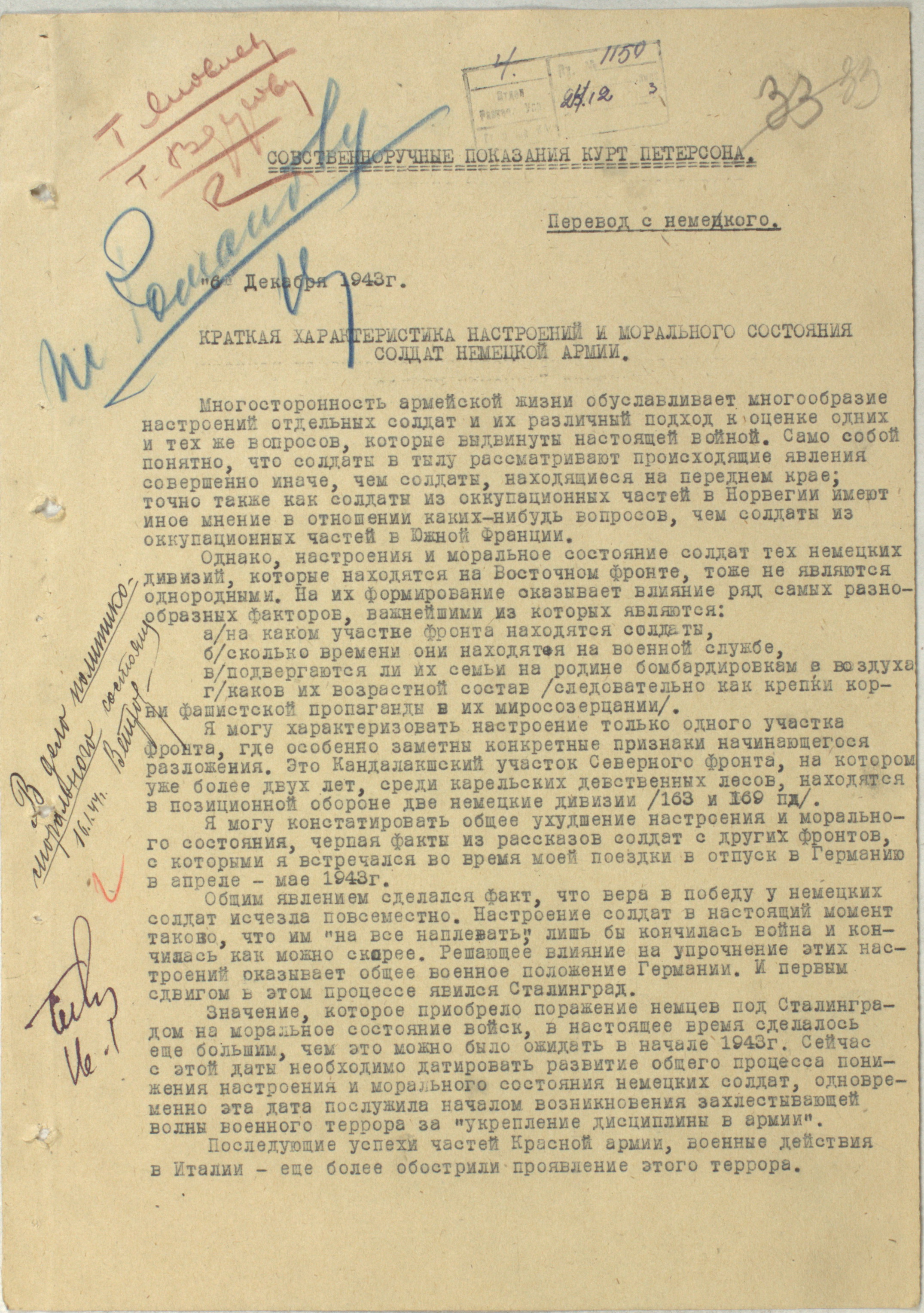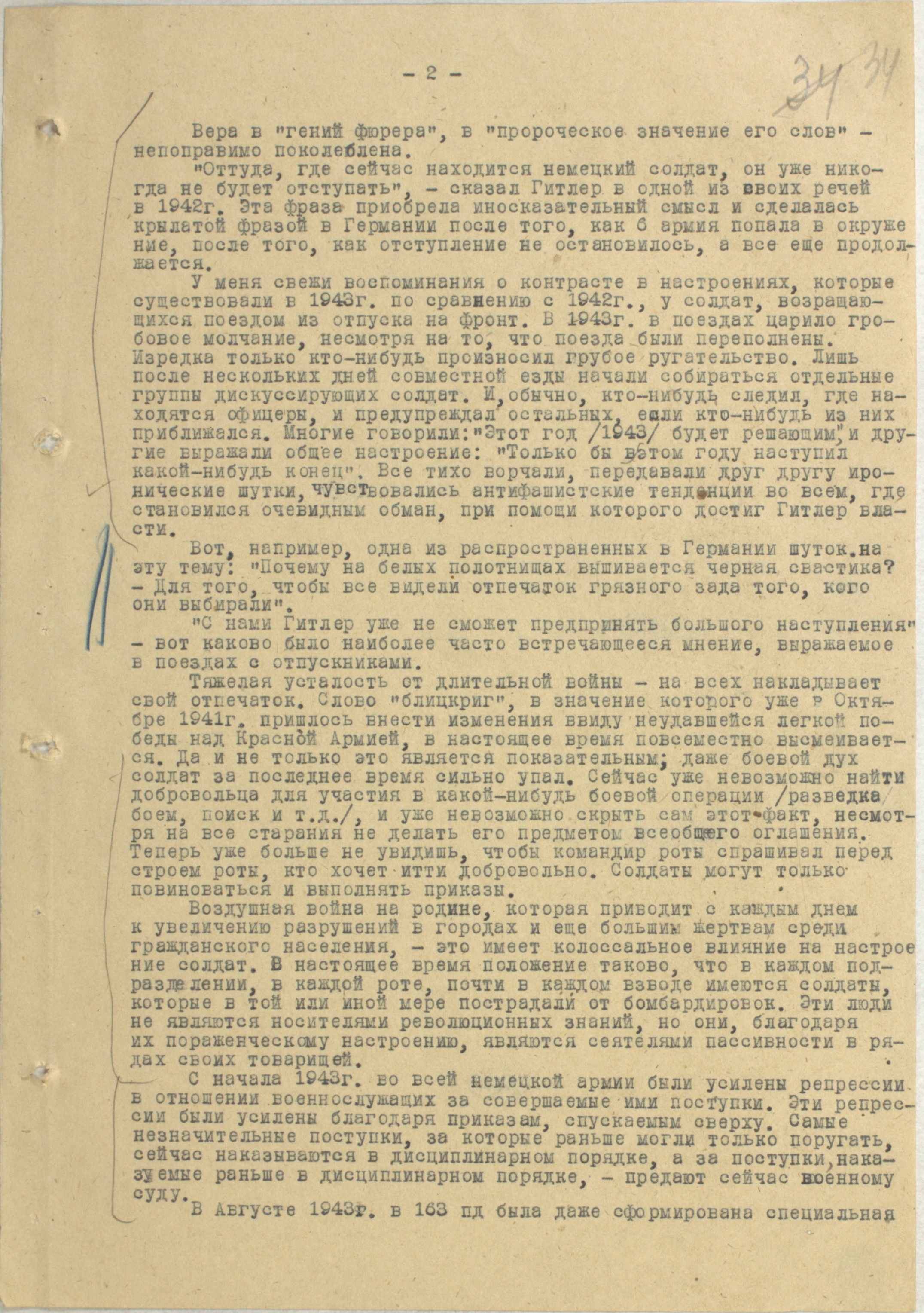 Отчет о настроениях и моральном состоянии солдат вермахта — 1943 г.