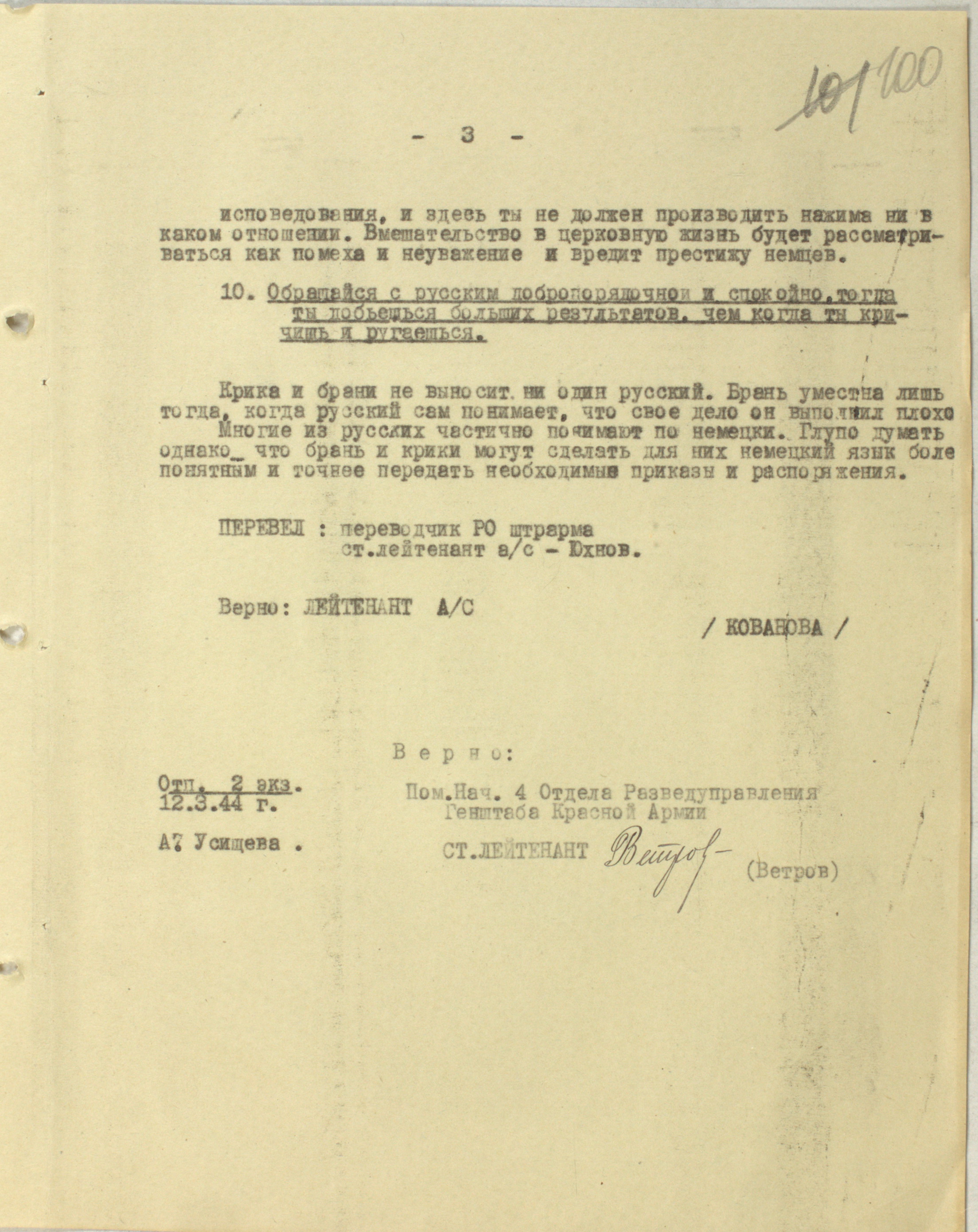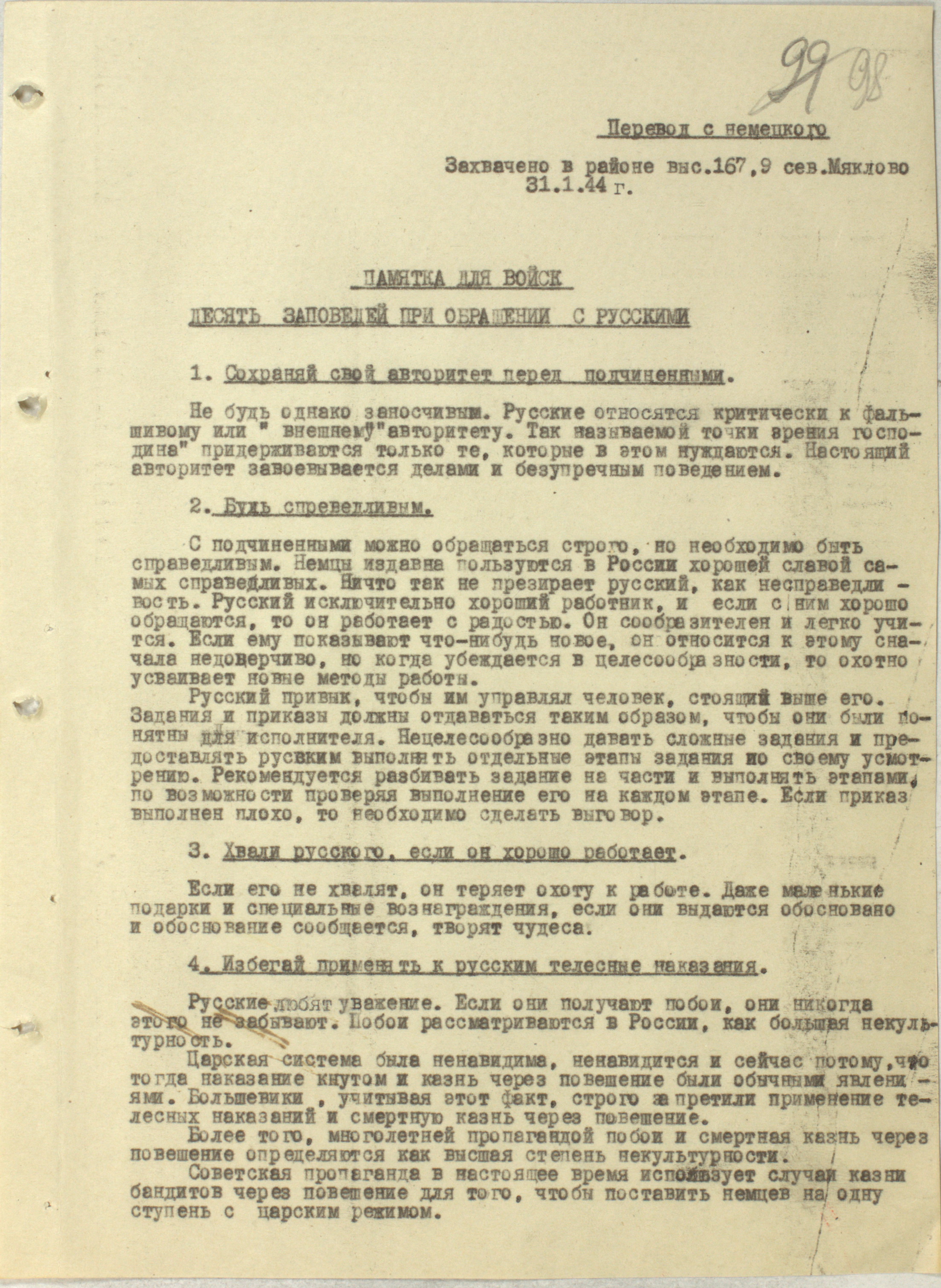 Памятка об обращении с советским населением — 1944 г.