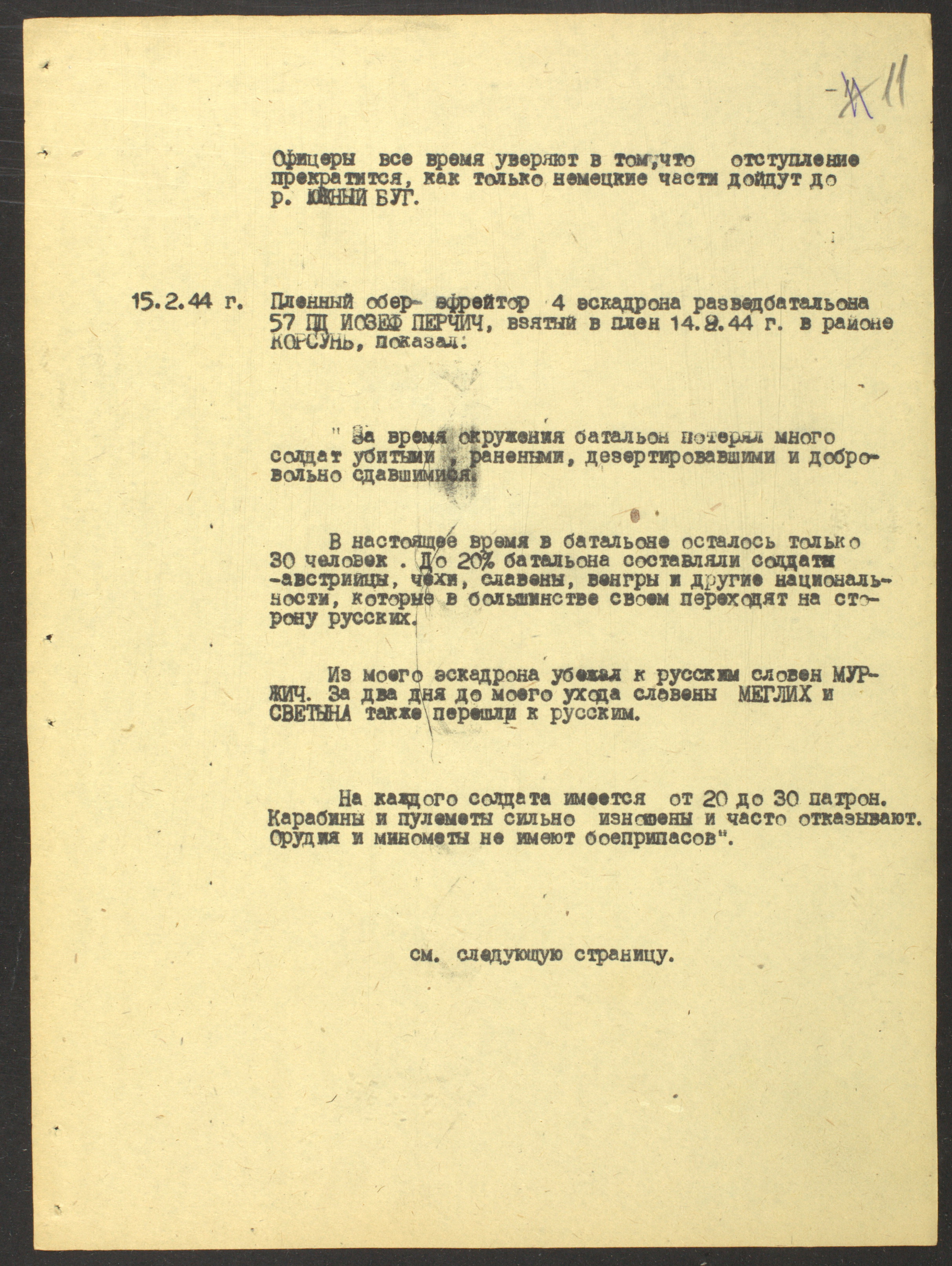 Началось разложение карательных, полицейских, власовских и прочих отрядов. Только к партизанам перешло свыше 100 человек…