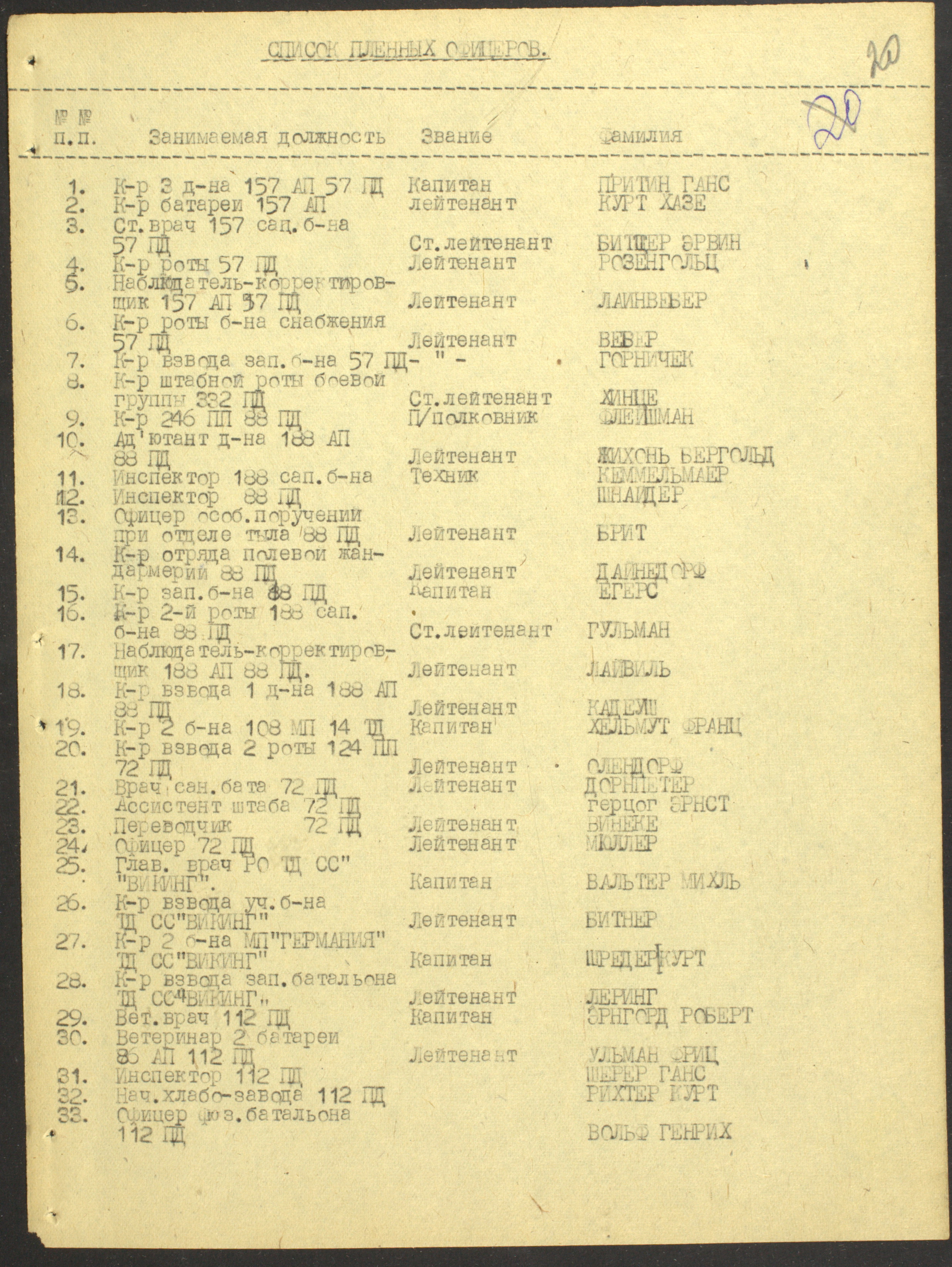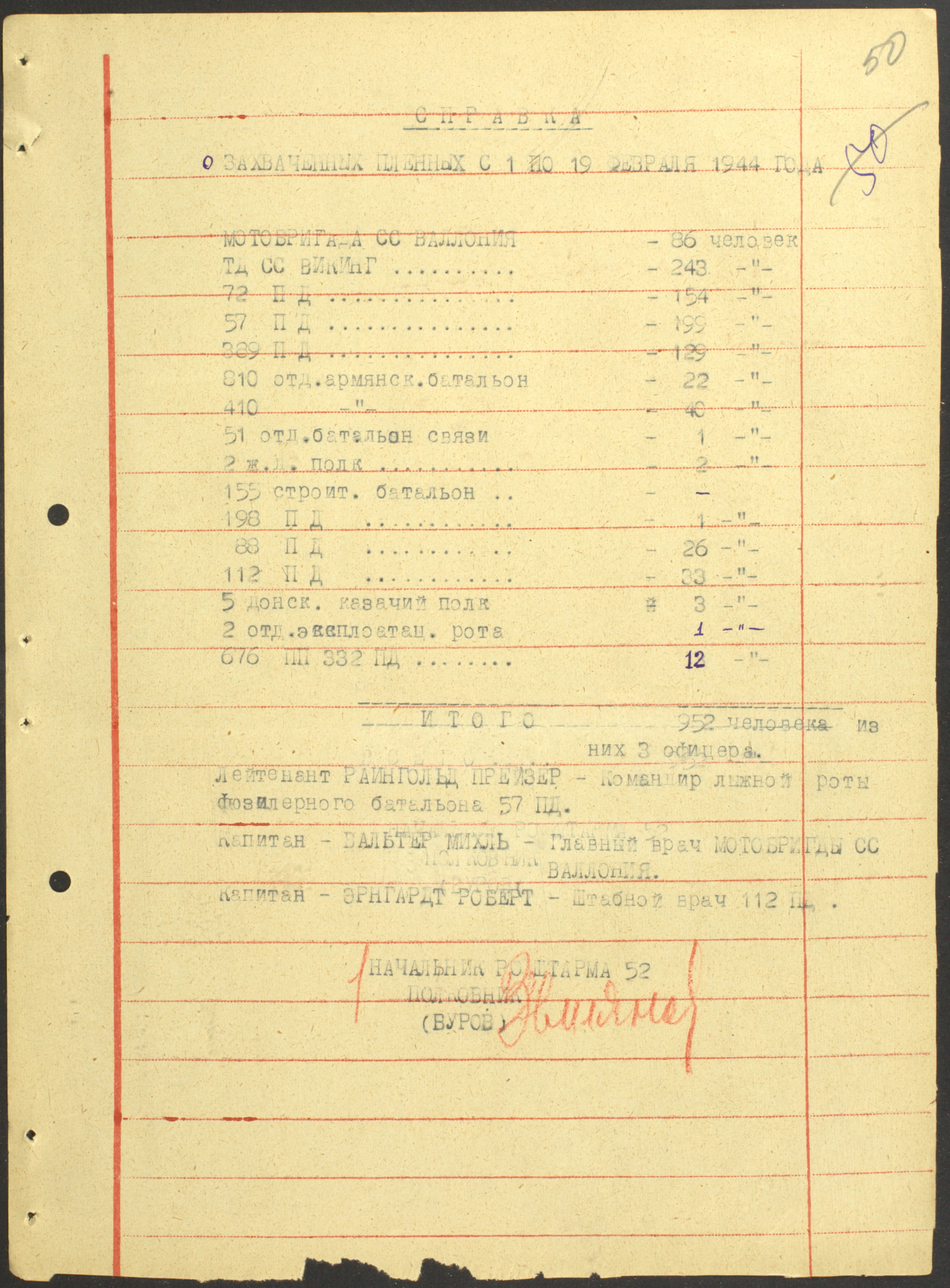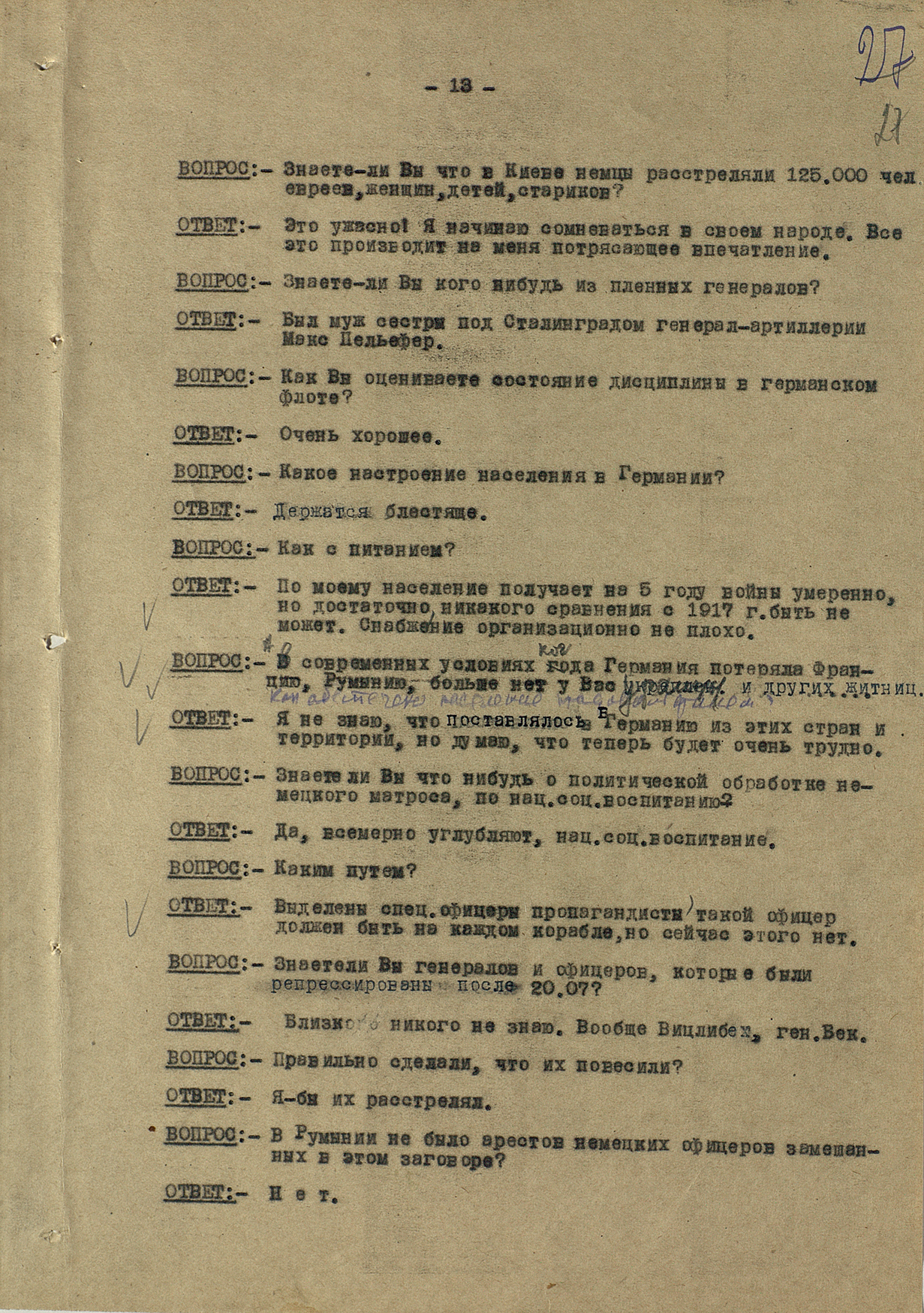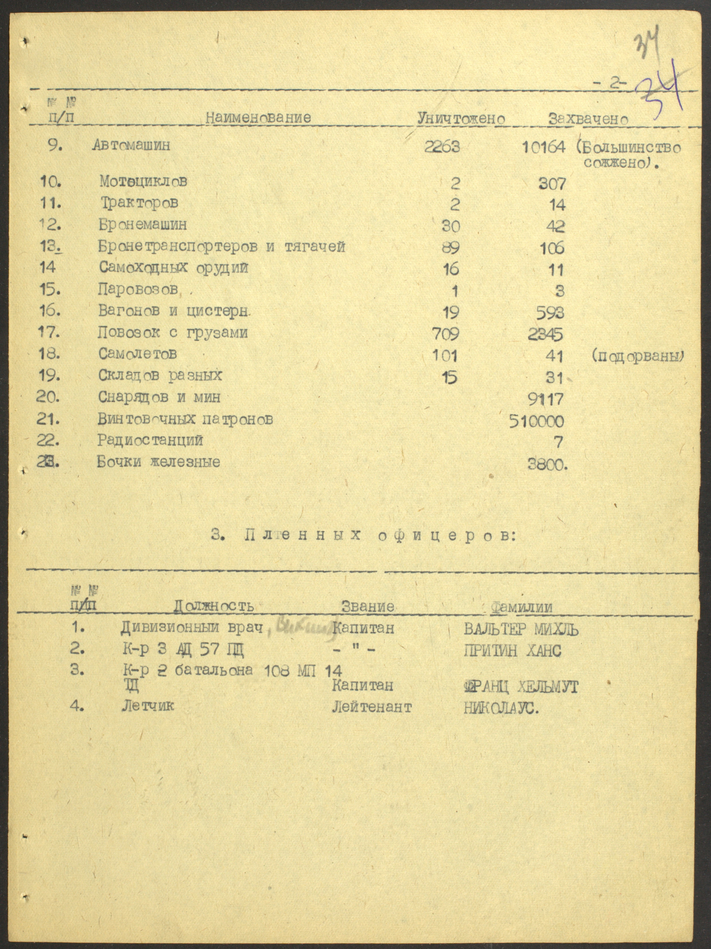 Мы видим из этого документа, что он подробно описал состав немецкого флота. Такое поведение характерно для офицеров высшего звена — обычно они держались два-три дня, но потом понимали, что уже не уйти. Они подробно описывали либо структуры армии, либо ход военных действий. Я еще не встречал ни одного протокола, где допрашиваемый назвал бы только имя и должность.