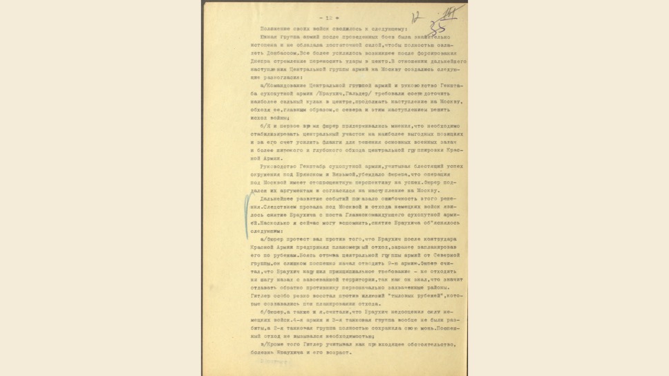 Германский исторический институт в Москве совместно с Центральным архивом Минобороны продолжают работу над раскрытием и оцифровкой документов времен Второй Мировой войны. В этот раз немецкие историки опубликовали на сайте проекта документы советской военной разведки — 341 папку с переведенными бумагами Третьего рейха, протоколами допросов военнопленных и личными письмами солдат. По просьбе корреспондента «Ъ» АЛЕКСАНДРА ЧЕРНЫХ немецкий ученый МАТТИАС УЛЬ отобрал и прокомментировал 12 уникальных документов, до этого недоступных даже профессиональным историкам.