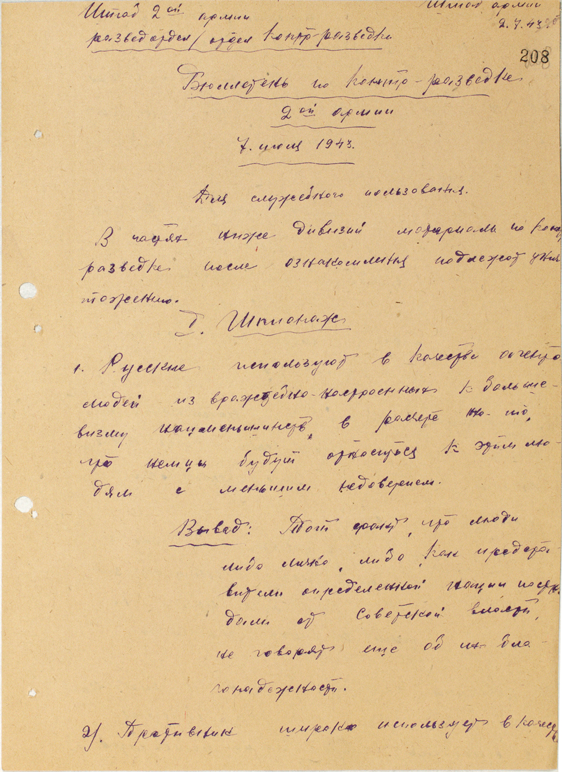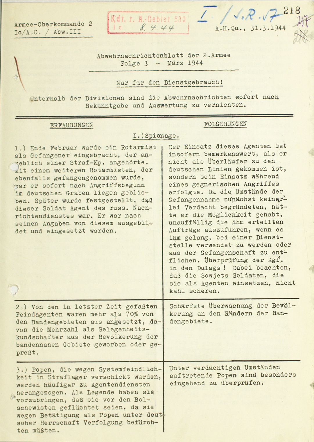 Инструкция отдела контрразведки 2-й немецкой амии (AOK 2) о попытках советского шпионажа и работе советской разведки — 1944 г.