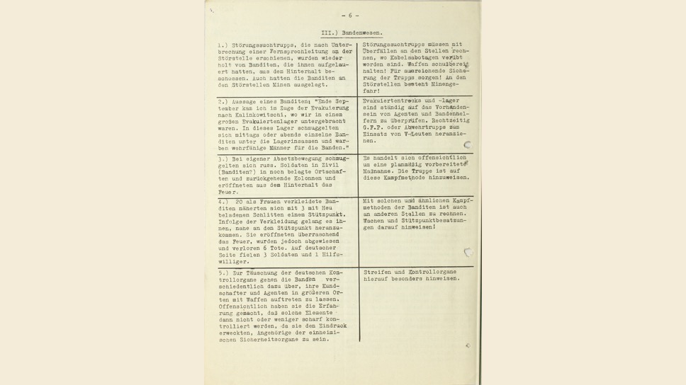 Маттиас Уль: Оценивая этот документ, важно понимать, в каком году он был выпущен. В начале Восточной кампании считалось, что русские вообще не нужны — и поэтому отношение было соответствующим. Но эта памятка не в 1941 году выпущена, а гораздо позже. К этому времени политика изменилась — уже стало ясно, что война не будет быстрой, что нужна рабочая сила из местного населения. Плюс уже появились планы создать воинские части, укомплектованные русскими. Уже появились так называемые хиви, которые выполняли очень много работ в немецкой армии, поэтому планы на советских пленных действительно изменились.