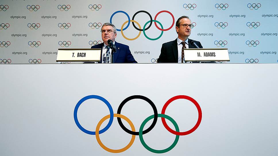 Президент МОК Томас Бах (слева) и глава департамента коммуникаций МОК Марк Адамс