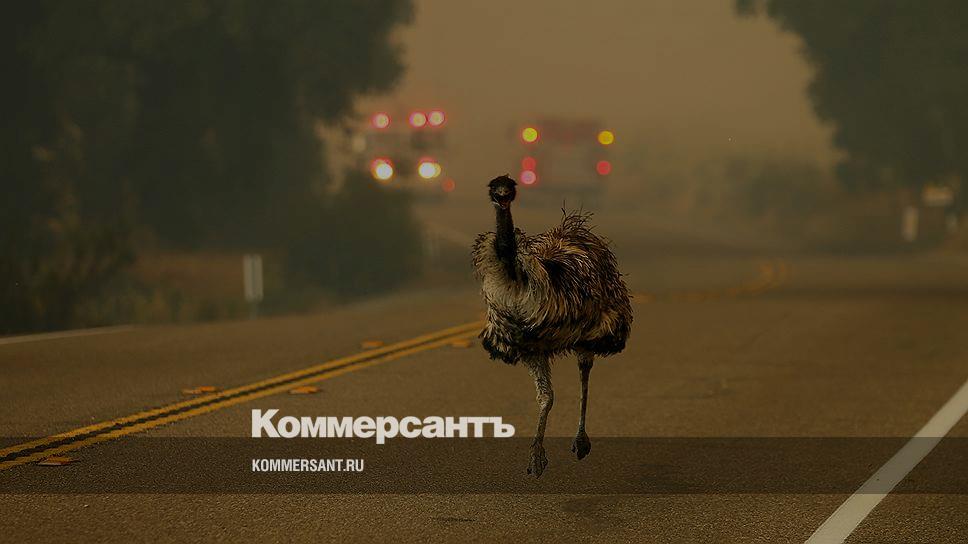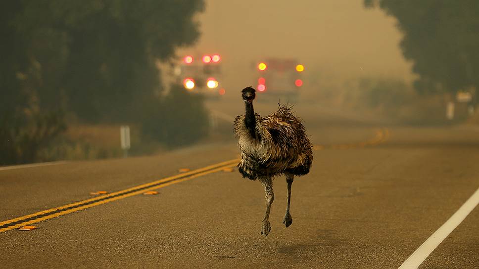 Потреро, США. Убегающий от сильного пожара в Калифорнии страус эму