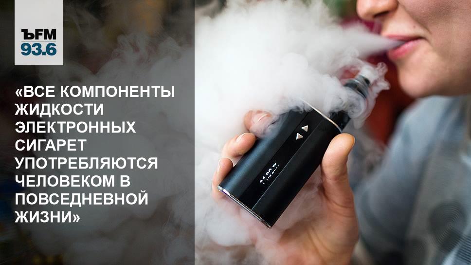 «Отсутствует процесс горения, также отсутствует огромное количество химических элементов, которые используются при производстве сигарет. Все компоненты жидкости для электронных сигарет употребляются человеком ежедневно в повседневной жизни: они присутствуют в продуктах питания, таких, например, как йогурты или крекеры. Абсолютно те же самые компоненты вы сможете найти в этих продуктах — растительный глицерин, пропиленгликоль и натуральные ароматизаторы», — уверен Ильин.