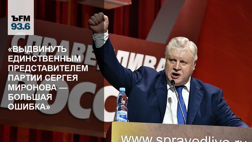 «Шансы "Справедливой России" достаточно невелики — 3-3,5%. Растеряла свой политический потенциал, потеряла достаточно много ярких представителей, таких как Гудковы, ушла Оксана Дмитриева, ушел Иван Грачев. Позиция "Справедливой России" весьма размыта, достаточно комплементарна. Одной из главных мишеней является правительство у наших оппозиционеров, но и правительству "Справедливая Россия" достаточно вяло оппозиционирует. Выдвинуть единственным представителем партии Сергея Миронова — большая ошибка. Он сильно потерял в общественном мнении своими компромиссными телодвижениями», — уверен Воробьев.