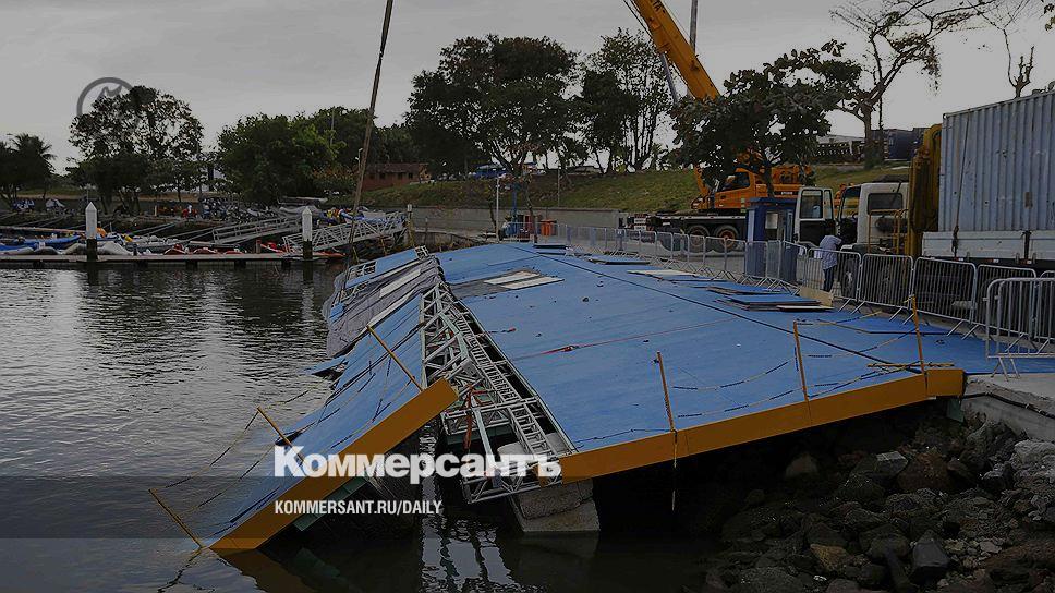 Это происшествие было хитом вчерашнего утра в Рио. В Марина-да-Глории собралось множество телевизионных бригад и множество фотографов. Картинка действительно выглядела грозной: подъемные краны на фоне знаменитой Сахарной головы тянут из воды потрепанные куски того, что еще несколько часов назад было причалом для олимпийских парусников, откуда они должны были стартовать.