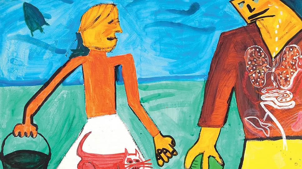 Нынешний дар превращает русский отдел музея в полноценное собрание: если что и пропущено из указанных в названии выставок 50 лет отечественного искусства, то наверстать это будет легко, но основное, в том числе то, что на рынке появляется уже крайне редко, в Центре Помпиду поселилось навсегда. Нонконформисты 1950-1960-х годов: лианозовцы, участники "Бульдозерной выставки" (например, работа Федорова-Рошаля, пострадавшая во время ее разгона), первые советские абстракционисты (включая тех, кто были хрущевскими "пидарасами" во время разгрома выставки к 30-летию МОСХа в 1962-м). Три поколения московского концептуализма: романтический — от Кабакова и Макаревича с Елагиной до Пригова; аналитический — группа "Коллективные действия", Скерсис, Захаров и другие; иронический — от психоделиков-"медгерменевтов" до лихих и безбашенных "Мухоморов" и "Перцев". Соцарт во всем его великолепии: Соков, Косолапов, Комар и Меламид, Брускин. 1990-е даны точечными ударами: Москва — вездесущим Гутовым и многими уже забытыми провокаторами "Чемпионы мира", нежнейшим Кошляковым и брутальным Куликом; Петербург — не только обязательными к упоминанию после их смерти Тимуром Новиковым, Мамышевым-Монро и Георгием Гурьяновым, но и упертыми некрореалистами.