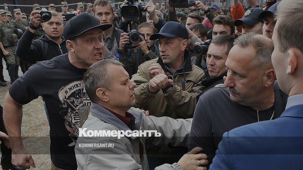 На момент нашего «прорыва» «огород» выглядел так: украинские силовики, экипированные бронежилетами, пытаются оттеснить подальше от посольства депутата Киевского горсовета, члена националистической партии «Свобода» Игоря Мирошниченко, который с тремя товарищами не пропускал к месту голосования россиян. Он взывал к их совести, заставлял говорить «на мове», толкал, но в итоге сам оказался зажатым в кольцо силовиков, сообщающих ему сокровенное: «Хочешь пиариться — иди на фронт. Повестку во вторник выпишем». Мирошниченко от предложения отказался и предпочел ретироваться, в то время как одного из его соратников скрутила полиция.
