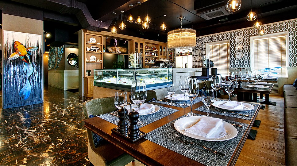 В Pescatore можно не только поужинать, но и купить понравившиеся морепродукты домой. В витринах рыбной лавки ресторана — морские гребешки, сибас, дорада, осьминог и живой камчатский краб.