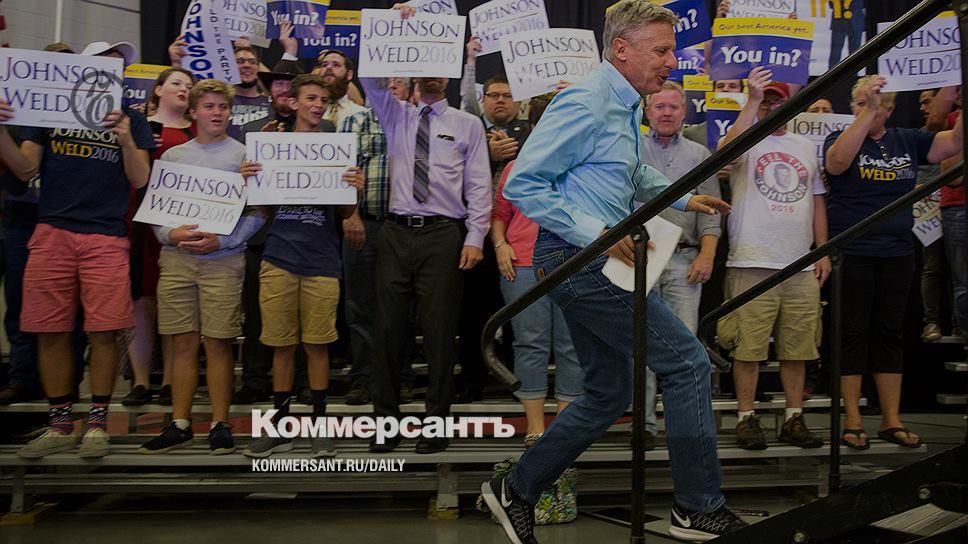 На фоне приближающейся к апогею битвы между Хиллари Клинтон и Дональдом Трампом малозамеченным остается выступление третьего кандидата в президенты США, которое, однако, уже сейчас можно считать сенсационным и историческим. Либертарианец Гэри Джонсон будет баллотироваться во всех 50 штатах и может рассчитывать не менее чем на 7% голосов. Притом что до сих пор кандидаты от этой партии, выступающей за свободную рыночную экономику и невмешательство США в дела других стран, не набирали больше 1,1%. В причинах популярности и тактике экс-губернатора Нью-Мексико, который за полтора месяца до дня голосования называет реальными свои шансы занять президентское кресло, разбирался в Вашингтоне корреспондент "Ъ" ПАВЕЛ ТАРАСЕНКО.