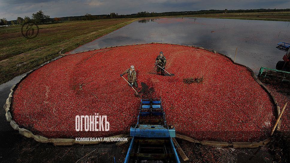 Самое крупное хозяйство, выращивающее клюкву в Европе, находится в Брестской области — это "Полесские журавины", раскинувшиеся на 82 гектара. Еще в 1980-е советские агрономы закупили партию саженцев "буржуазной" клюквы-гиганта из США и приспособили ее к белорусским условиям. Уже в середине 90-х, когда многие предприятия закрывались, "Журавины" достигли успеха: им удалось собрать 370 тонн полезной ягоды с молодых кустов, при этом часть урожая закупила сама Америка, где засуха погубила плантации клюквы. С тех пор масштабы ягодного производства планомерно росли, в прошлом году были собраны рекордные 665 тонн клюквы, в этом году ориентируются на схожие показатели. Причем, как можно увидеть на фото, в "Журавинах" сбор клюквы осуществляется двумя способами: как более простым и дешевым "влажным" (поля затапливаются и всплывшие ягоды собираются в сети), так и более дорогим — "сухим" (ручной или маломеханизированный сбор). "Влажная" клюква пригодится для соусов и джемов, а "сухая" будет продаваться в своем естественном или замороженном виде