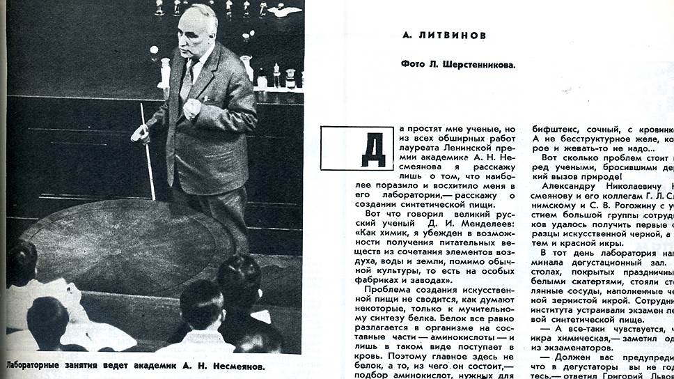 Впрочем, для главы института академика Александра Несмеянова искусственная икра была только шагом на пути к более амбициозной цели — полностью искоренить сельское хозяйство.