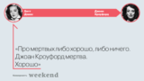 Режиссер и продюсер «Американской истории ужасов» и «Американской истории преступлений» Райан Мерфи начинает съемки сериала «Вражда» — первый сезон новой телеантологии будет посвящен тому, как поссорились гранд-дамы Голливуда Бетт Дэвис и Джоан Кроуфорд. В ожидании упоительных подробностей взаимоотношений, увенчавшихся фразой Бетт Дэвис «О мертвых либо хорошо, либо ничего. Джоан Кроуфорд мертва. Хорошо», Никита Солдатов изучил высказывания кинодеятелей друг о друге и пришел к выводу, что материала «Вражде» хватит не на один сезон.