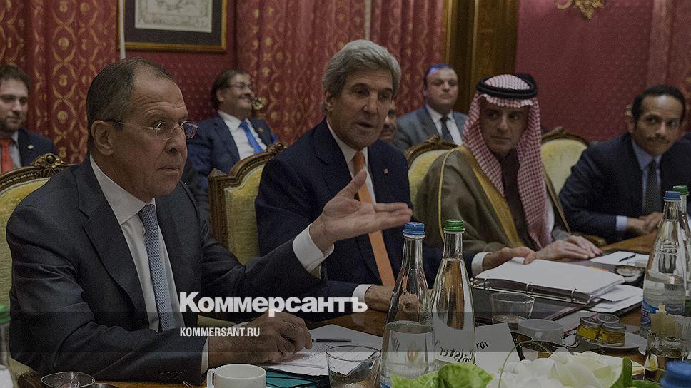 Слева направо: министр иностранных дел России Сергей Лавров, госсекретарь США Джон Керри, министр иностранных дел Саудовской Аравии Адель ибн Ахмед аль-Джубейр