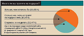 Не можете ничего придумать — доверьтесь профессионалам. Например, "Празднику жизни" — группе компаний, которая специализируется на организации праздников и изготовлении подарков. Одна из фирм делает шары любых цветов, размеров и форм и собирает из них гирлянды, букеты, которые используют для украшения банкетных залов или просто дарят. Можно выбрать что-нибудь по каталогу фирмы, а можно придумать самому. На 14 февраля, например, одна девушка заказала букет из 14 шаров, на каждом при этом была надпись: "Петрович, я тебя люблю!". Стоит вся эта надувная красота от $60 за индивидуальный заказ и от $15 за каталожный.