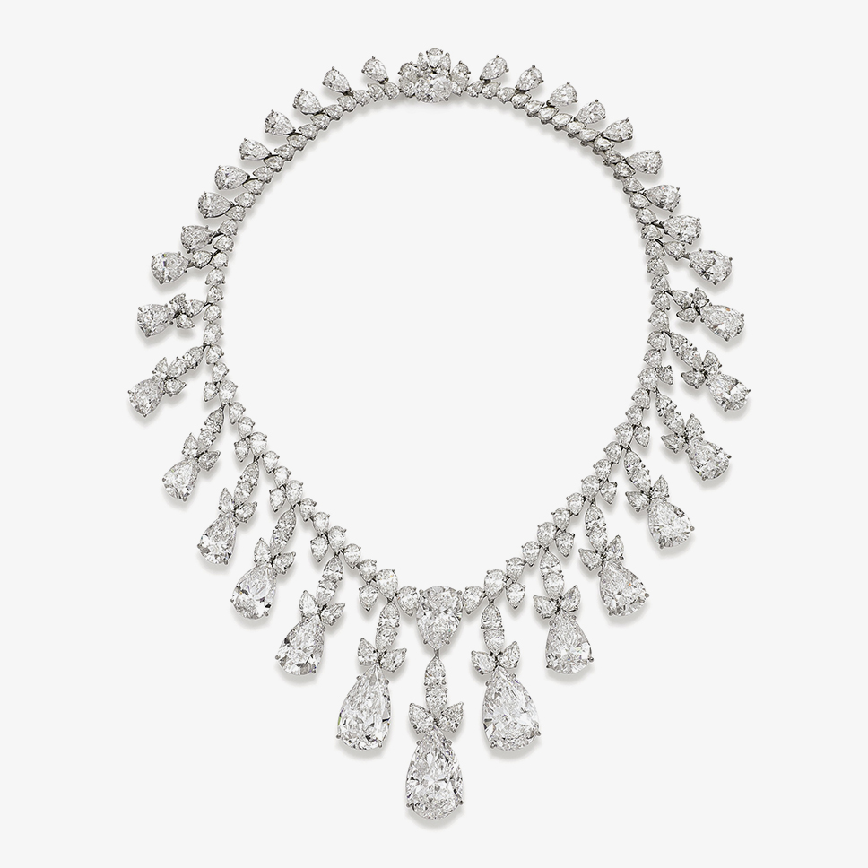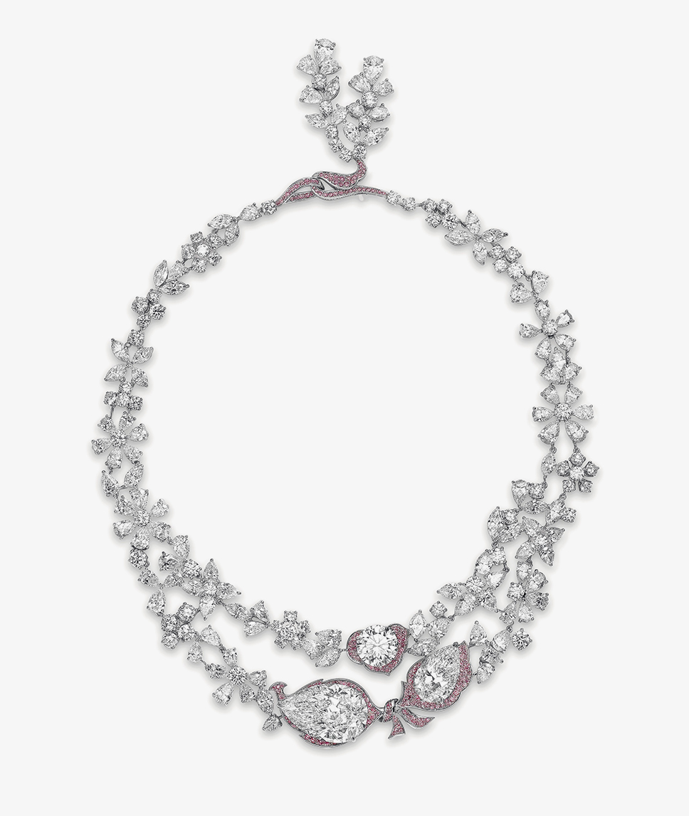 Ожерелье под названием «Сад Изабеллы» включает в себя три выдающихся бриллианта цвета категории D весом 31,38, 12,11 и 8,07 карата. Общий вес всех камней составляет 91,80 карата (оценка $8–12 млн).