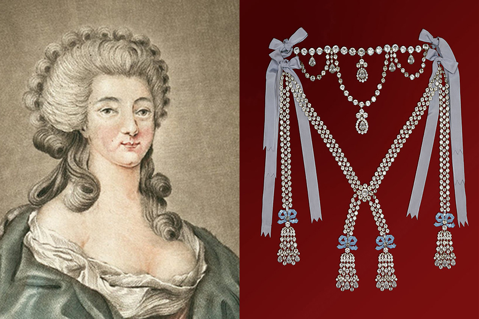 Ожерелье предназначалось фаворитке Людовика XV мадам Дюбарри. На протяжении нескольких лет придворные ювелиры Бемер и Бассанж собирали для него лучшие камни, вложив в работу все свои средства и наделав долгов. В 1774 году король неожиданно умирает — украшение фаворитке так и не досталось. Долги ювелиров росли, но они не решались разобрать колье, чтобы распродать камни, хотя его цена была непомерно высока для потенциального покупателя (на сегодняшний день эксперты говорят об оценке от $8 млн до $30 млн).