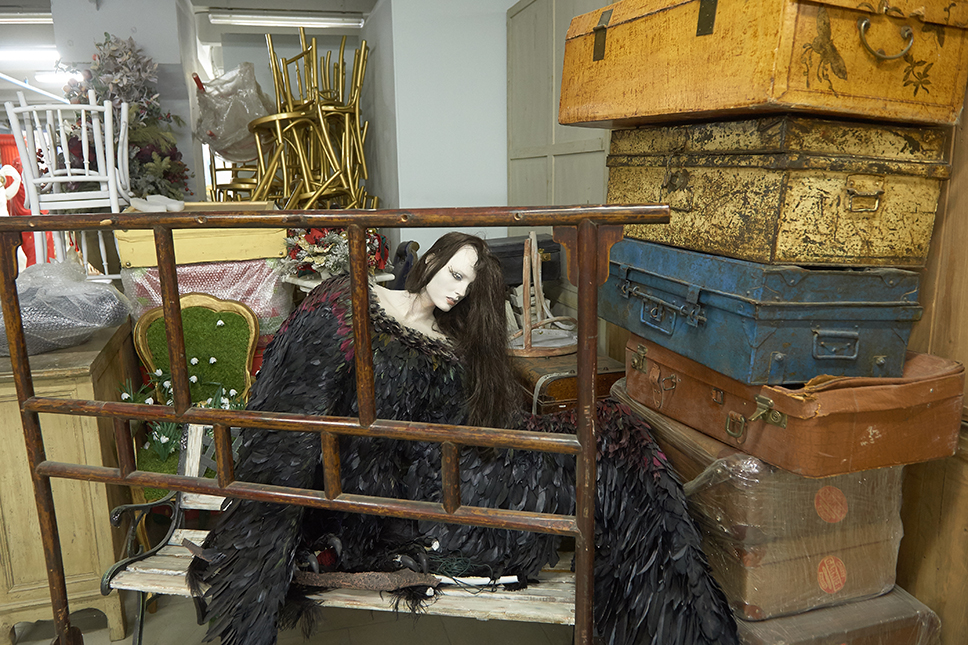 Мы оказываемся в загородной мастерской в тот момент, когда мастера пытаются уложить огромное пенопластовое дерево в грузовик. Похоже, придется пилить. «Как пилить?» — спрашиваю. А что такого? Дело привычное. Потом в ЦУМе части просто склеивают строительной пеной. Середина ноября — склад полупустой. Кое-что осталось от прошлых витрин, это будет реставрироваться и, возможно, использоваться в следующих сезонах.