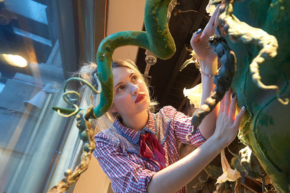 Но вернемся к новогодним витринам. Как правило, проект полностью готов уже к началу июня. Тогда же начинается производство. Почти все лепится, клеится, шьется вручную. Есть новые технологии, 3D-принтер, но они не приживаются, и основную часть декораций все равно изготавливают традиционными способами в мастерской в Алтуфьево.
