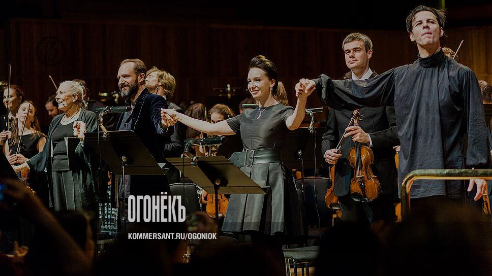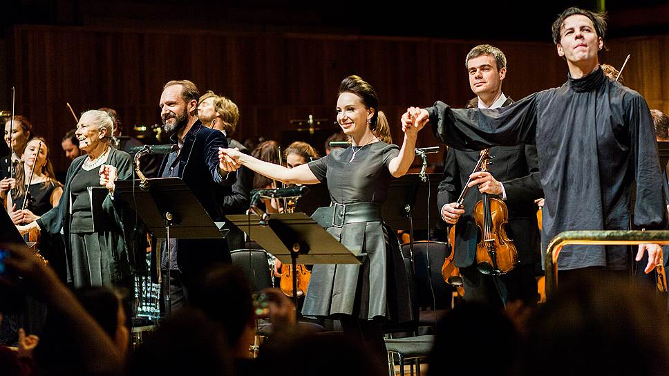 Именитые участники благотворительного концерта фонда Gift of Life (справа налево: Теодор Курентзис, Чулпан Хаматова, Рейф Файнс)