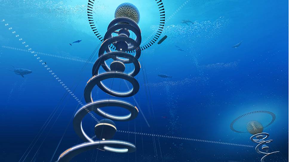 Город посреди океана станет даже более безопасным и удобным, чем существующие поселения на суше, заявляют японские архитекторы: комфортная температура, чистый воздух и никаких стихийных бедствий. Наверху, ближе к поверхности воды, будет находиться сфера диаметром 500 м, а внутри нее — жилье, офисы, рестораны и зоны отдыха. С дном сферу соединит огромная спираль, внутри которой установят лифты. Высота всей конструкции составит 3-4 км. Предполагается, что жители будут заниматься научными исследованиями, разведением рыбы и добычей полезных ископаемых.