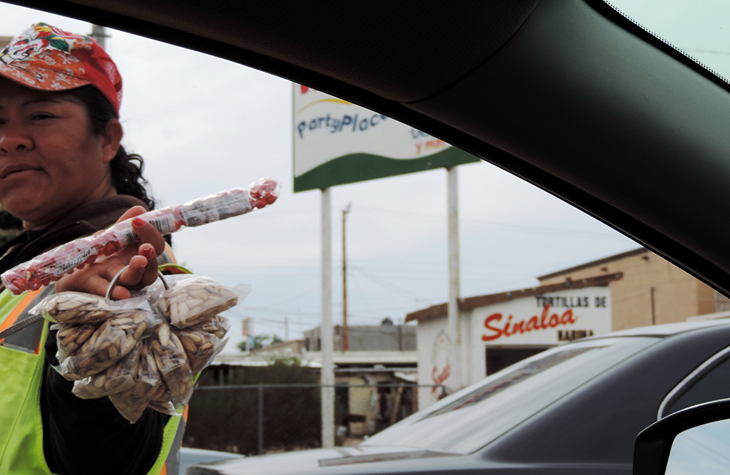 Очередь у границы — это своеобразный маленький мир: здесь снуют мойщики окон, продавцы игрушек и воздушных шаров, обменщики валюты и просящие денег бедняки, торговцы водой, конфетами из тамаринда и «крема-де-элоте» — молочным супом с вареной кукурузой и сыром, который вам сделают на заказ по крику из окна и принесут прямо к авто.